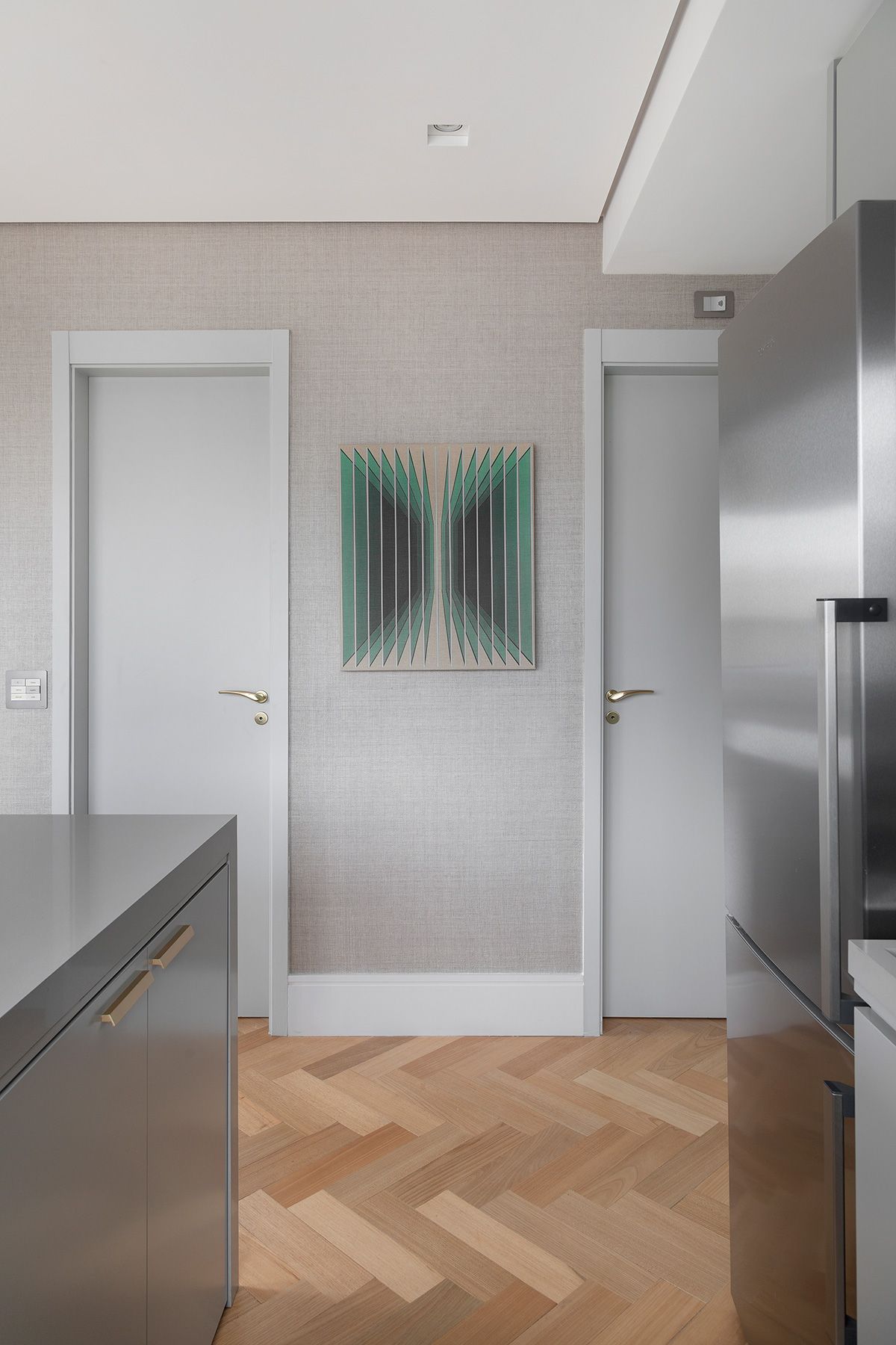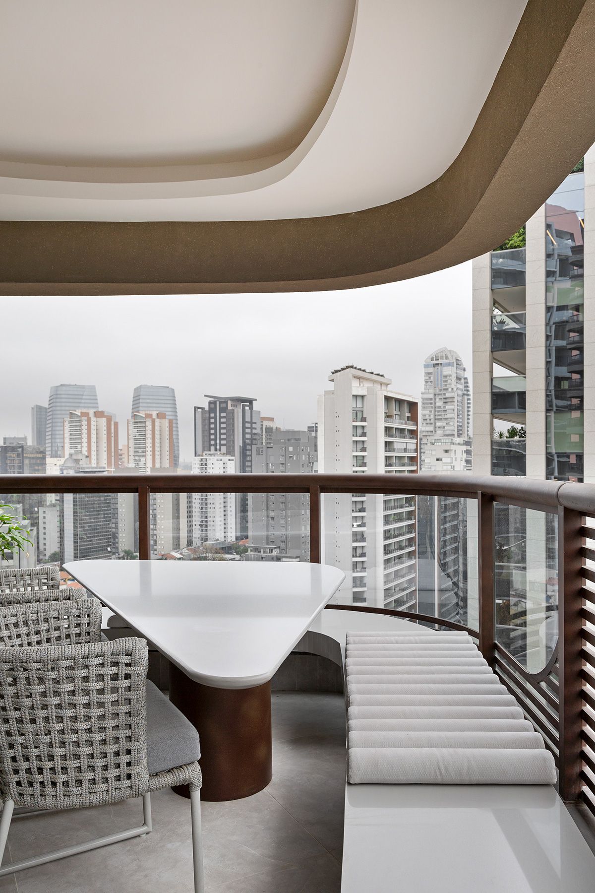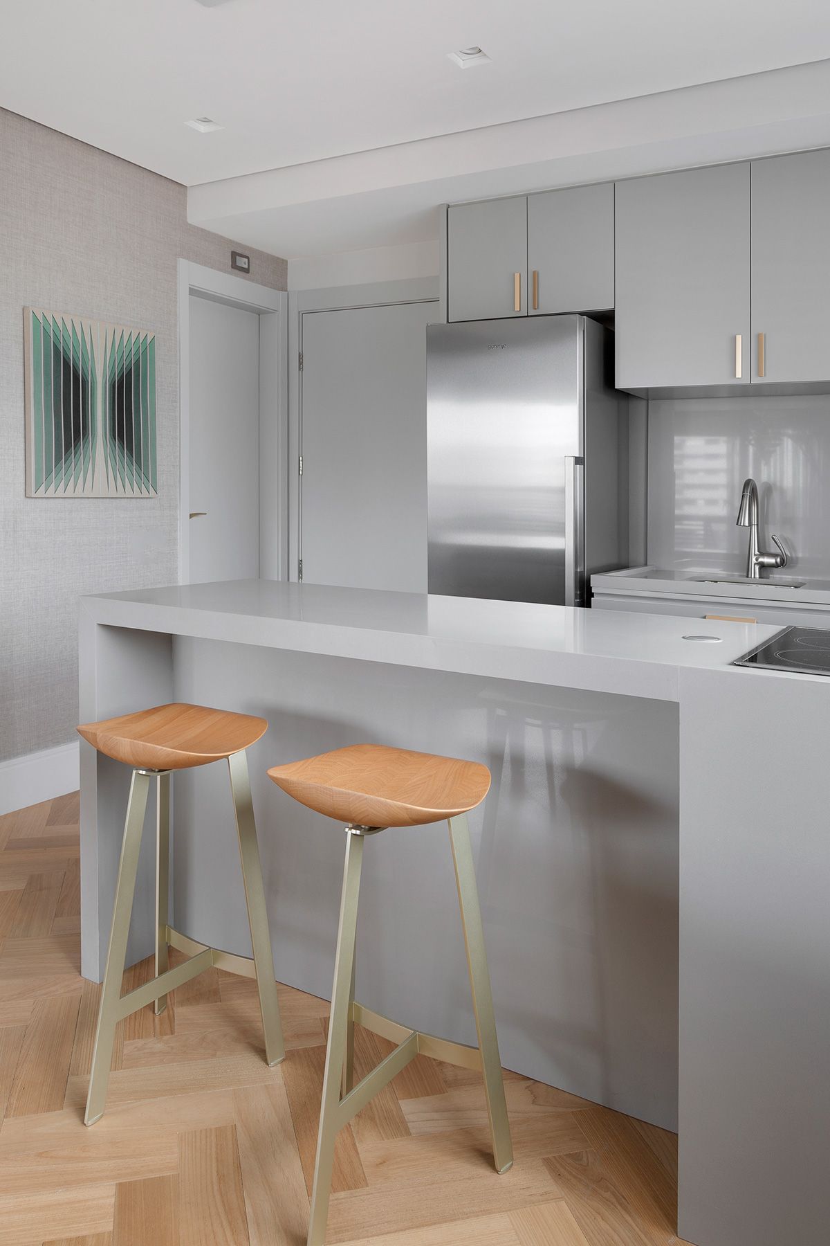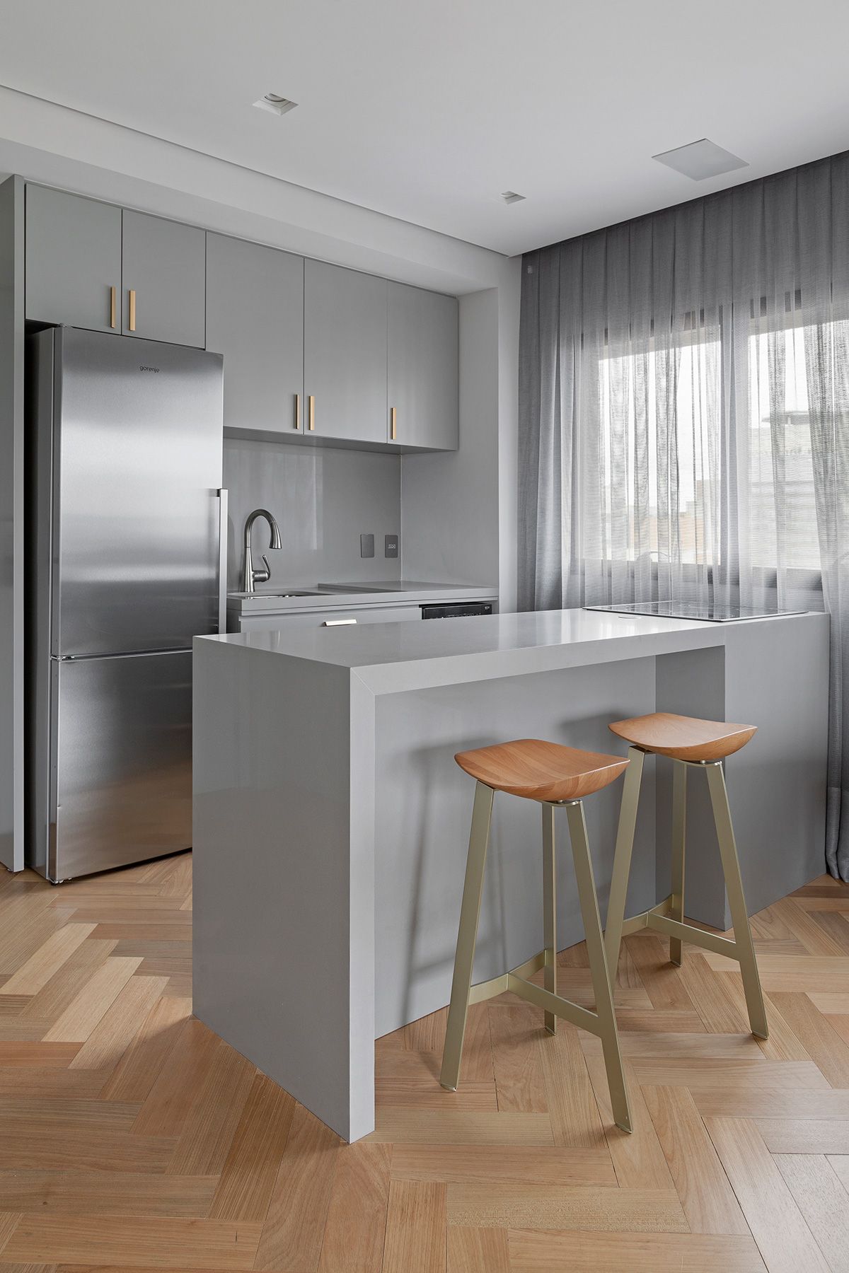 A junção de dois apartamentos – um de 47m² e outro de 49m² – resultou em uma morada idealizada por outra junção: a parceria entre o Studio Ipê e a arquiteta Drielly Nunes. Este projeto à quatro mãos foi desenhado para uma mulher de 30 anos, solteira, que buscava um lugar no bairro Vila Olímpia menor do que o que residia, e com os requisitos praticidade e funcionalidade.