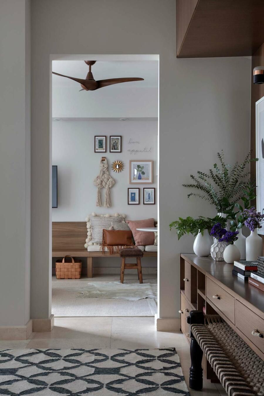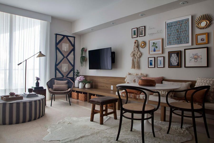“O projeto é, ao mesmo tempo, elegante e casual, com toques de boho, refletindo o atual jeito de viver da moradora.”