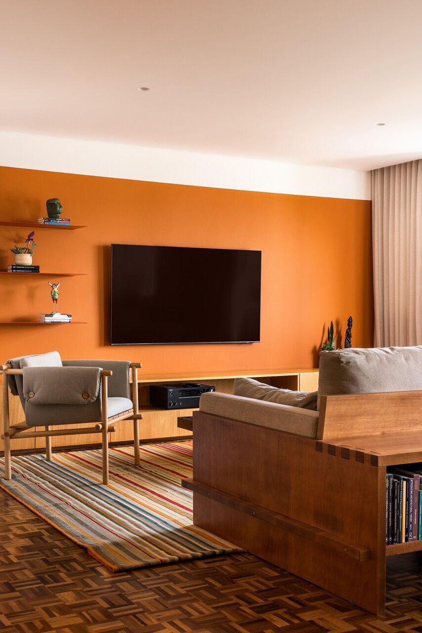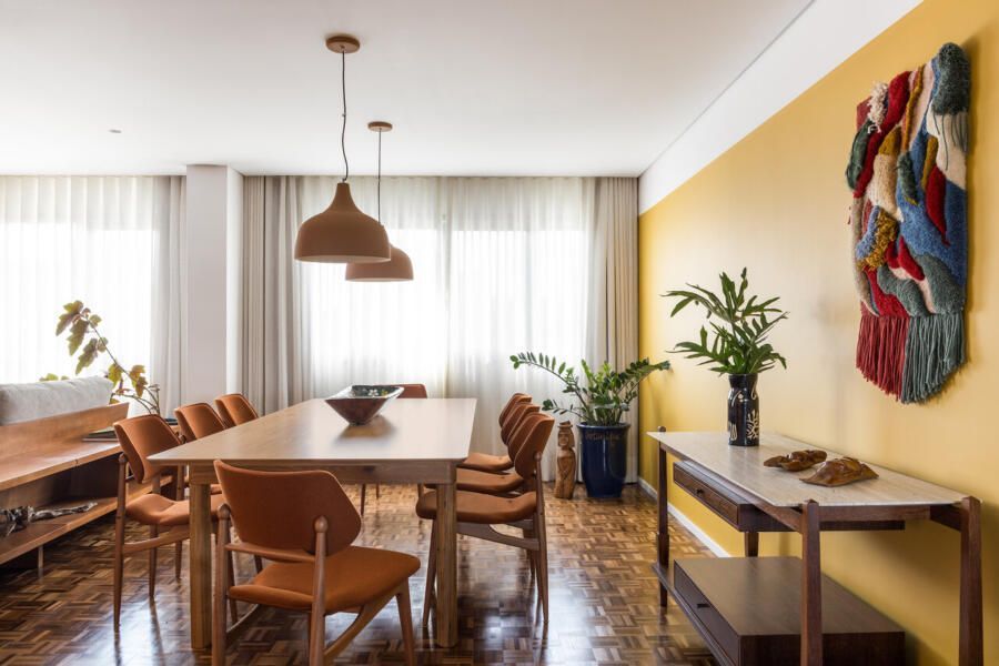 A combinação de cores quentes, madeira, obras de arte e objetos trazidos de viagens constrói uma atmosfera afetiva e cheia de caráter. No fim, o projeto revela que personalidade não se impõe — ela se manifesta, quando arquitetura e moradora falam a mesma língua.