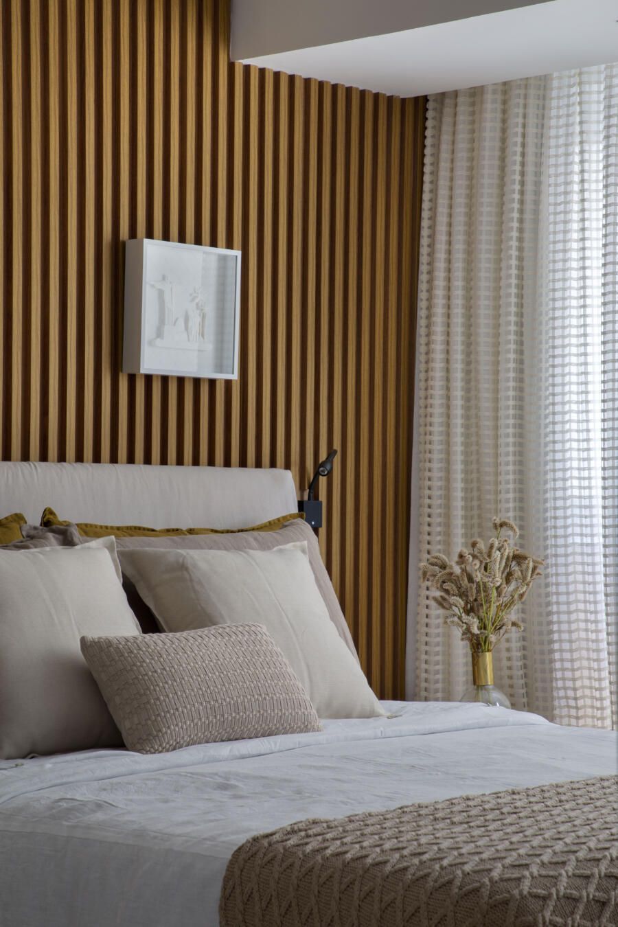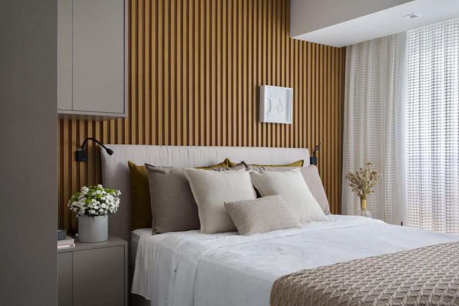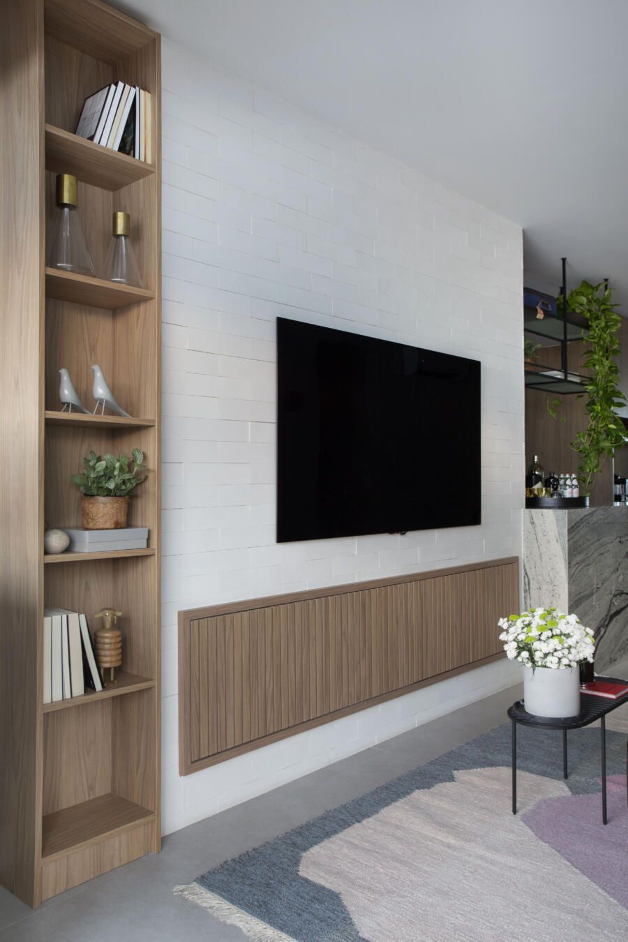 “O casal é super moderno e adora projetos industriais, por isso pediram um que tivesse toques desse estilo, sem móveis e paredes brancas, mas com detalhes em madeira. Todos os cômodos foram trabalhados por nós e a decoração é inteiramente nova.”