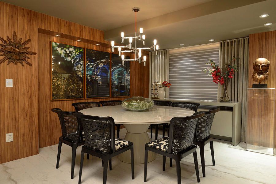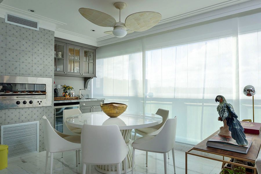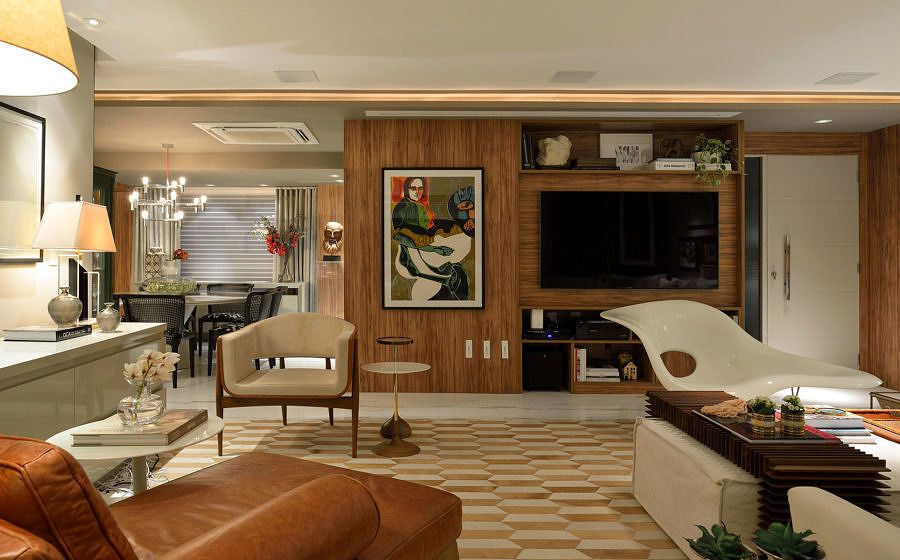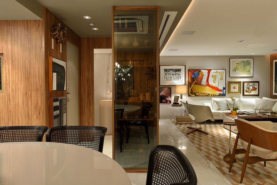 A proprietária do apartamento de 200 m² é uma mulher dinâmica e participou totalmente na criação do projeto, realizado pelo escritório Manarelli Guimarães Arquitetura. Ela desejava um apê claro, fluído, em que tudo pudesse se mover facilmente. A base de todo o processo foi integrar os espaços com uma área de lazer parecida com a de uma casa, tornando o apartamento confortável para família e para receber os amigos.