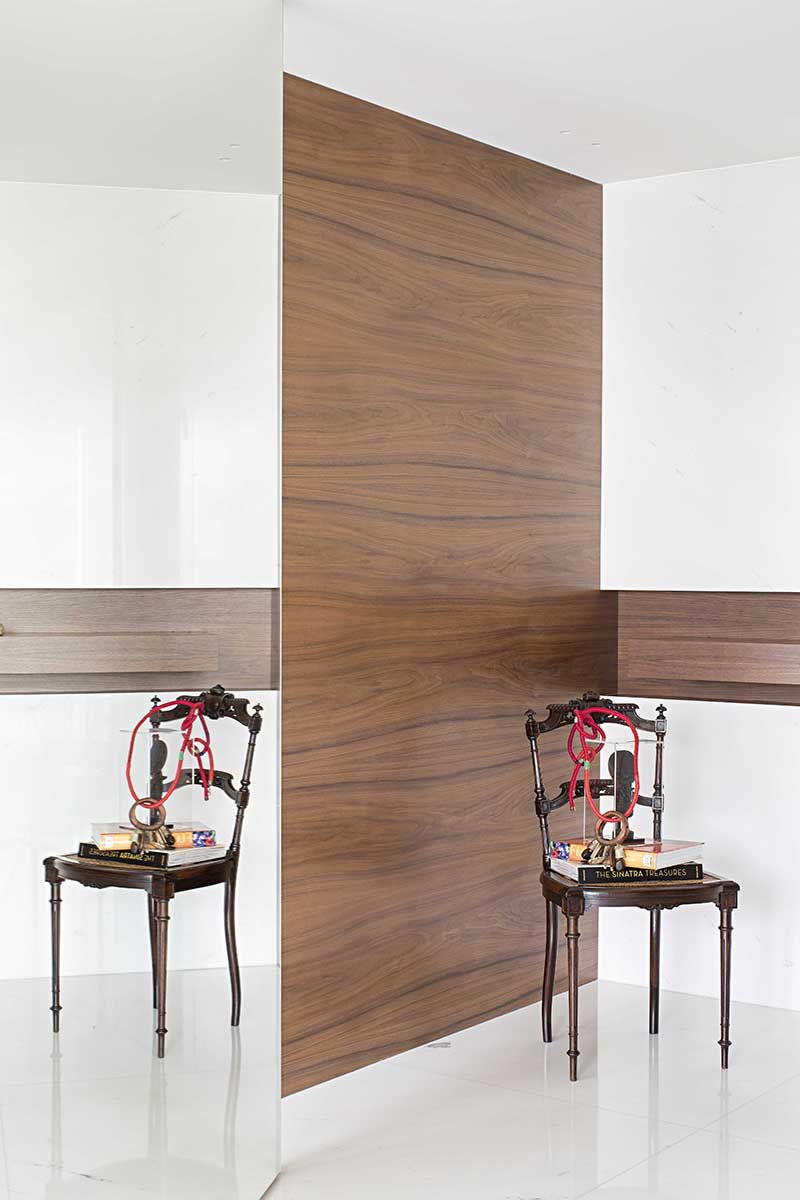 A obra, que durou 1 ano, resultou em um décor atemporal com móveis e peças de cores mais escuras que fazem contraponto. Na sala de estar, a estante desenhada pela Korman Arquitetos em mármore, com um efeito diferente, pois fugiu da tradicional madeira.