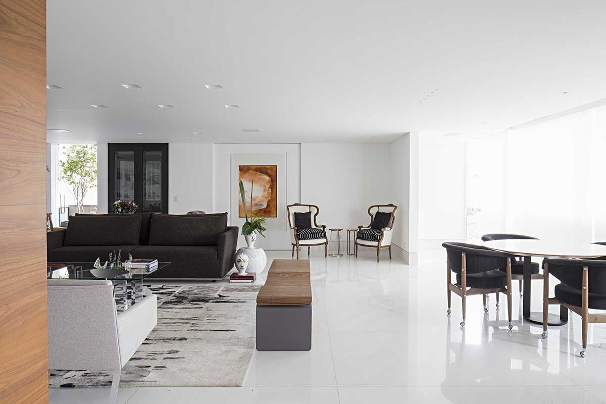 Trata-se da residência de uma senhora que, depois do casamento dos filhos, resolveu mudar a estrutura e o décor. Ela procurou o escritório Korman Arquitetos para uma transformação total no apartamento de 350 m², em São Paulo.