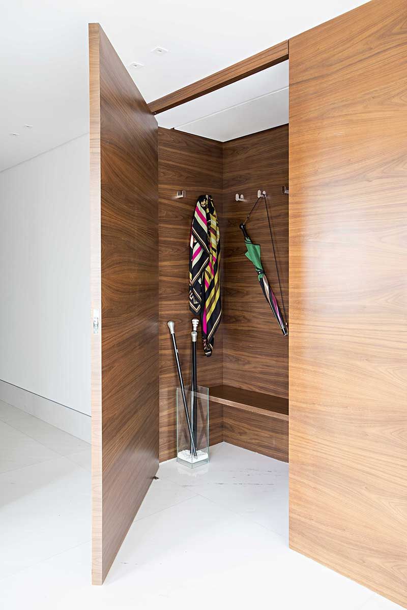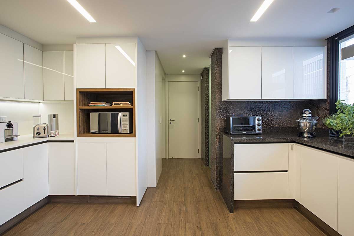 Todos os caixilhos do imóvel foram trocados, pois tratava-se de um imóvel em um prédio antigo e os caixilhos estavam deteriorados. Além disso, todo apartamento contou com a troca do piso, antes de madeira, a Korman Arquitetos substituiu por mármore Sivec.