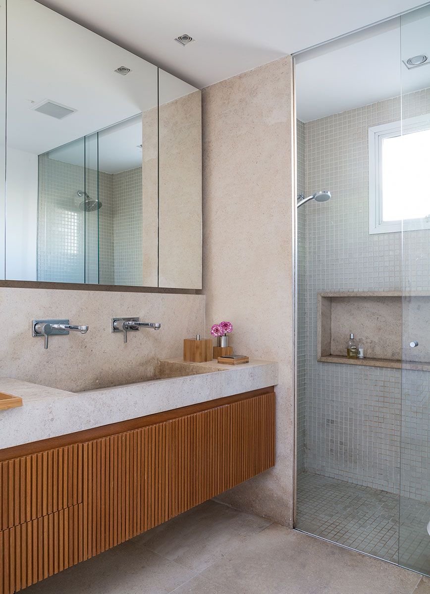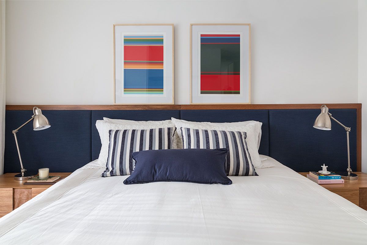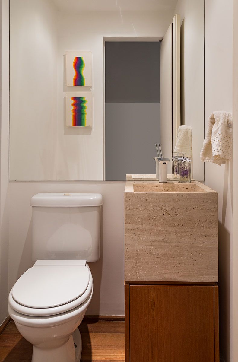 Suprimimos os detalhes em excesso da obra, como rodapés e guarnições, para ganhar nas alvenarias espaços para os armários embutidos e maiores vãos de porta. Traduzimos a essência do minimalismo em ganho espacial e funcional.