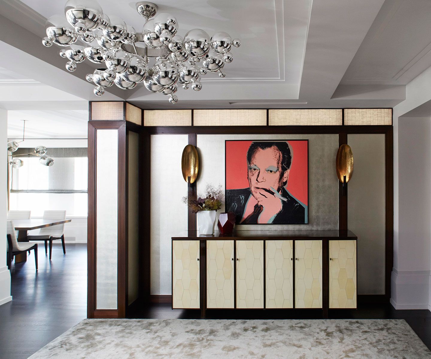 Esse projeto de interiores foi pensado pelo Rodney Lawrence para um jovem casal sem filhos com um estilo de vida urbano. Além da funcionalidade, os clientes desejavam um projeto realmente único, com o uso de materiais, pedras e tecidos especiais.