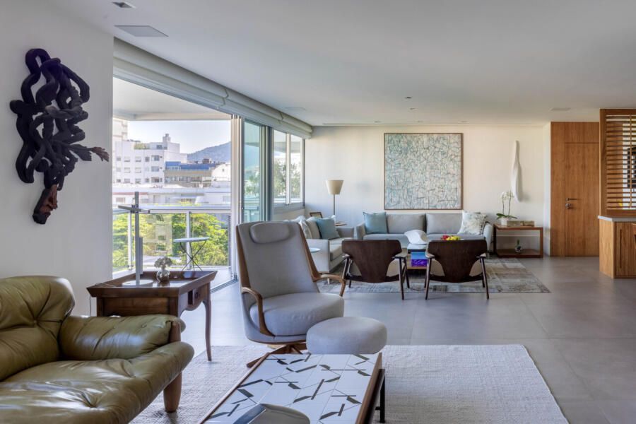 Para a empreitada, que durou quase um ano, ela escolheu o arquiteto Mauricio Nóbrega que fazia reuniões semanais com os proprietários e sua equipe para fazer todos os ajustes necessários tanto para atender às necessidades do casal, quanto para respeitar todas as normas ABNT de um imóvel acessível. O apartamento em Ipanema, Rio de Janeiro – bairro escolhido por ser plano, de fácil acesso e oferecer uma grande variedade de serviços, tinha originalmente quatro quartos distribuídos em 150m²