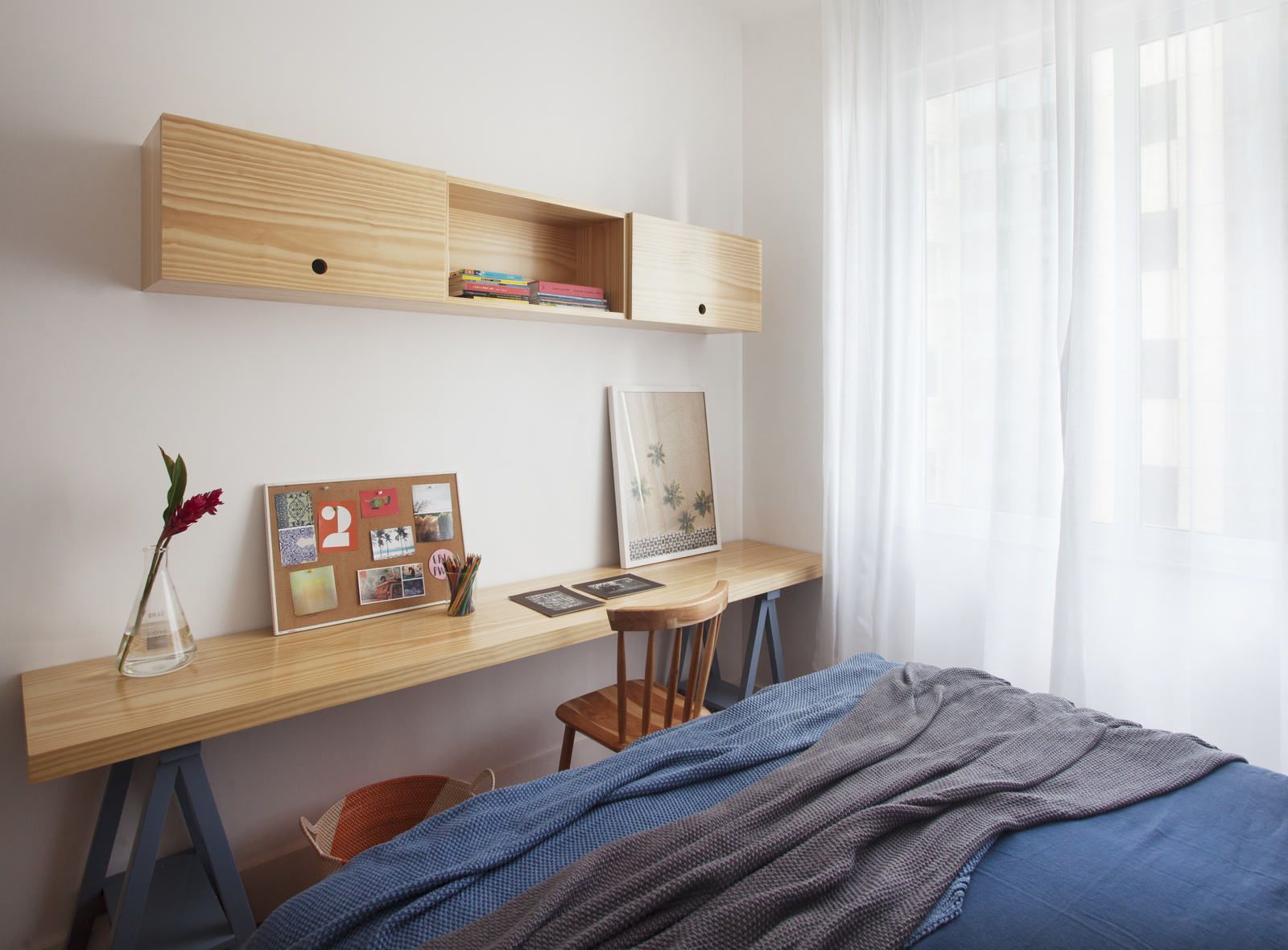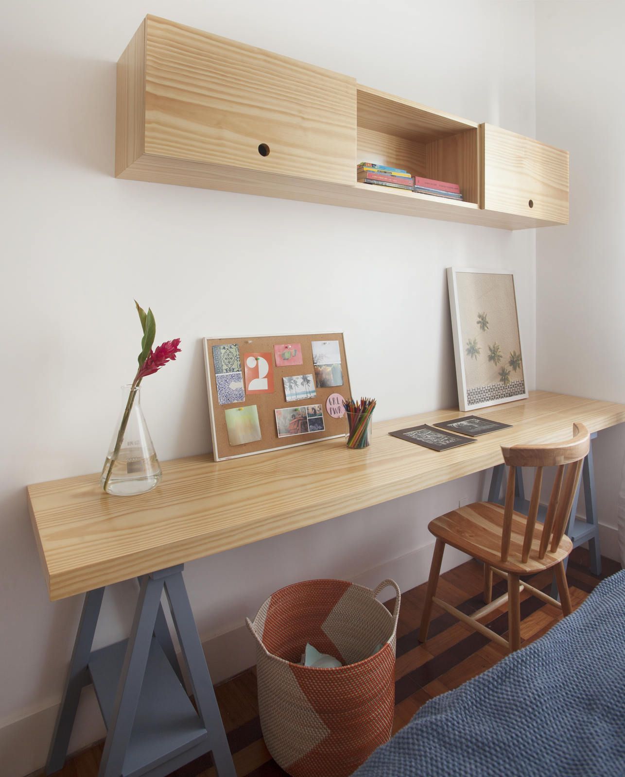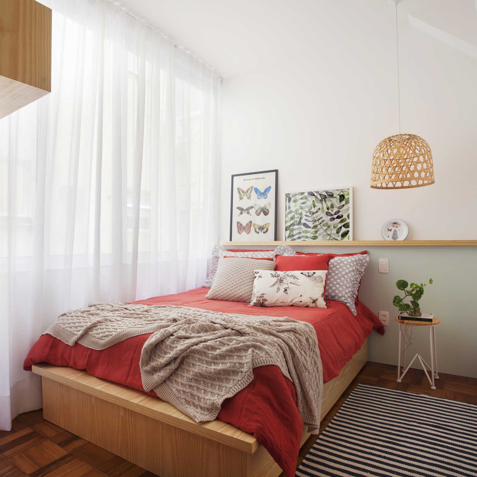 “Além de atender a demanda da família de passar os finais de semana no imóvel, que precisavam de um quarto de casal e outro que coubesse as três filhas, o imóvel também precisava servir para ser alugado como Airb&b. Dessa forma, os proprietários solicitaram materiais e revestimentos de fácil manutenção.”