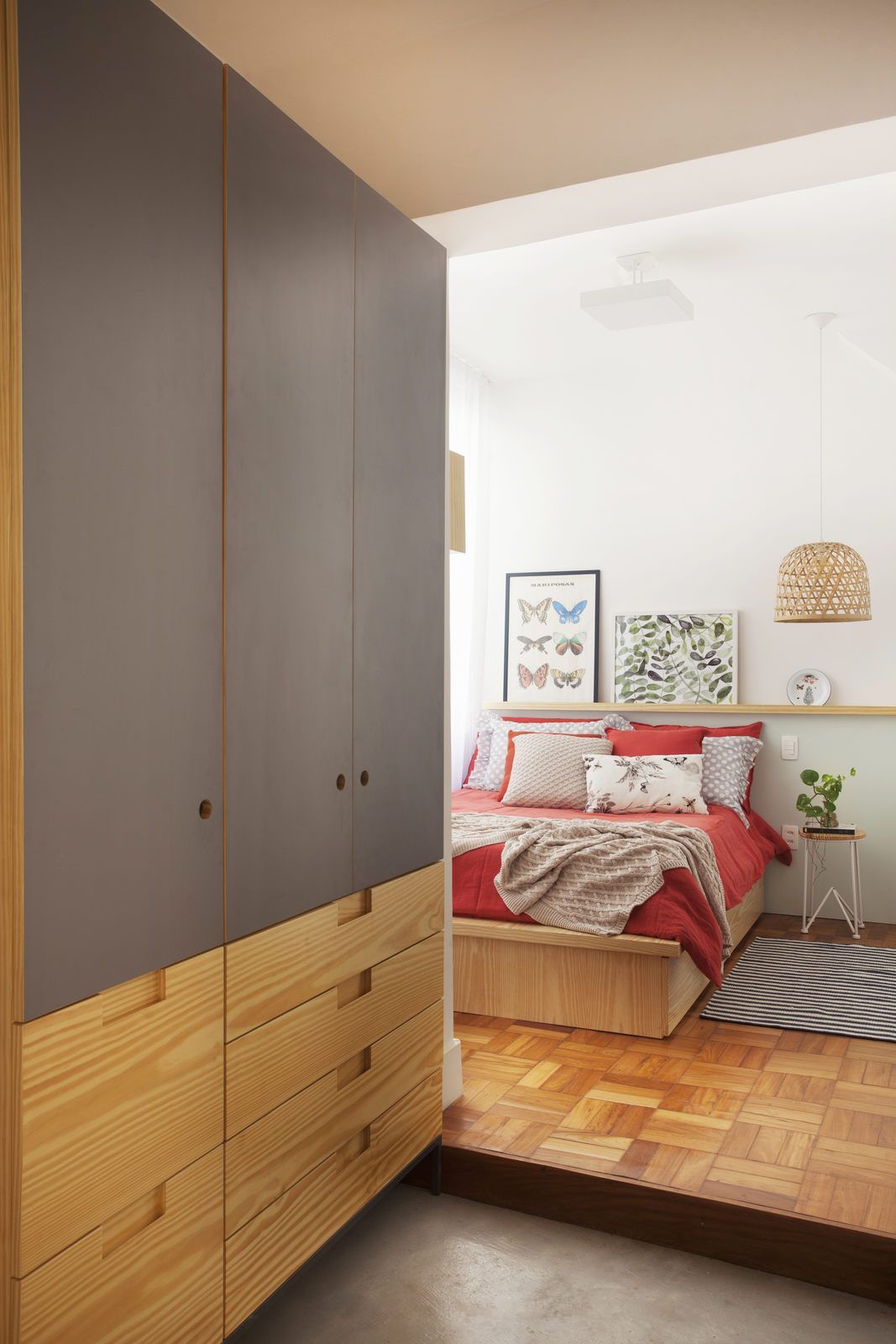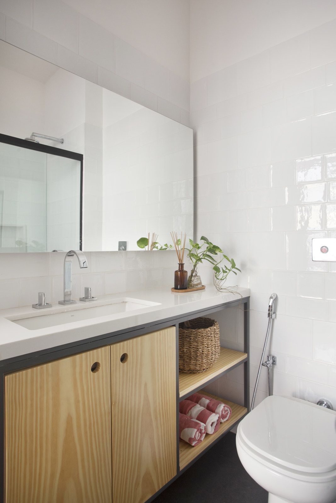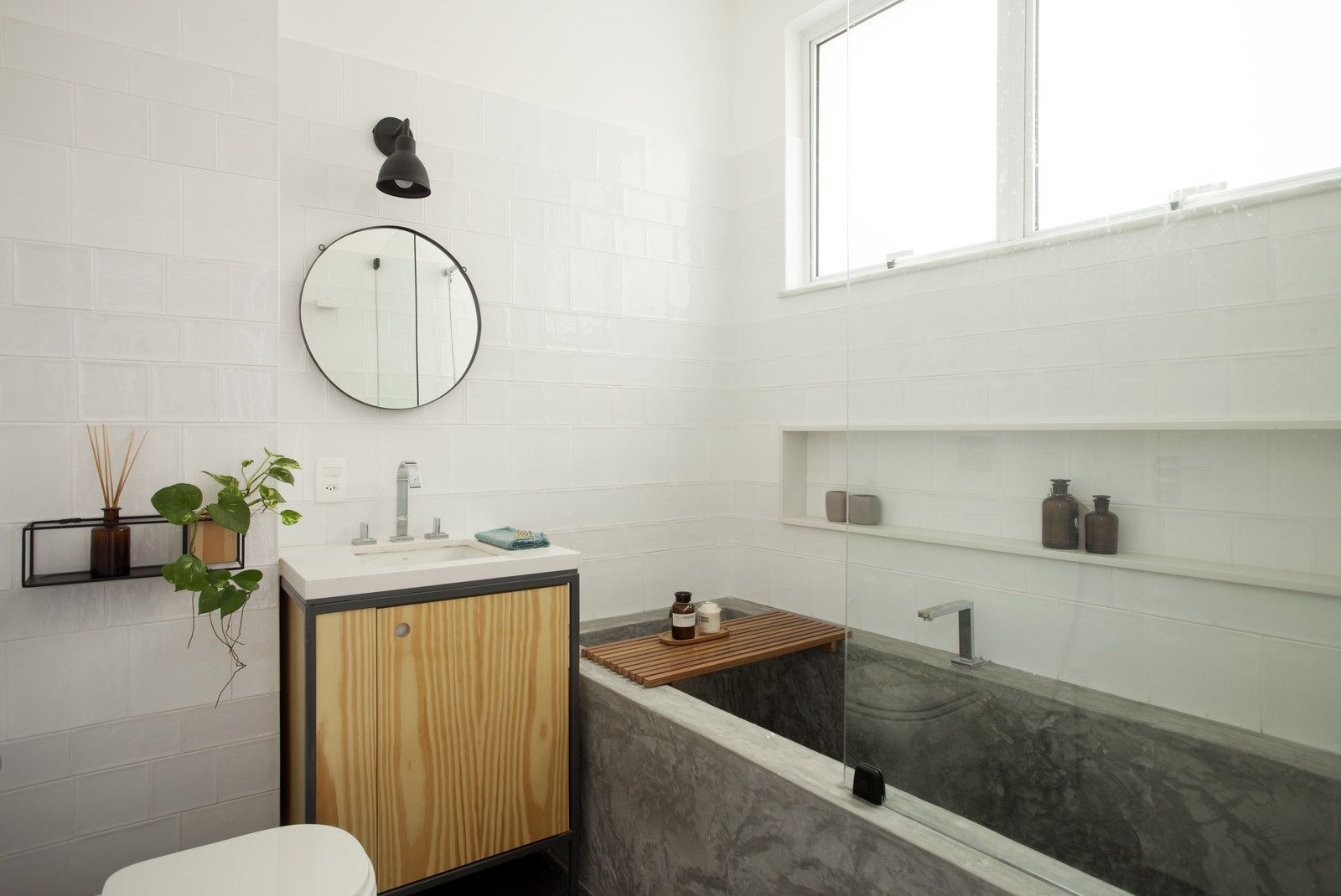 “Além de atender a demanda da família de passar os finais de semana no imóvel, que precisavam de um quarto de casal e outro que coubesse as três filhas, o imóvel também precisava servir para ser alugado como Airb&b. Dessa forma, os proprietários solicitaram materiais e revestimentos de fácil manutenção.”