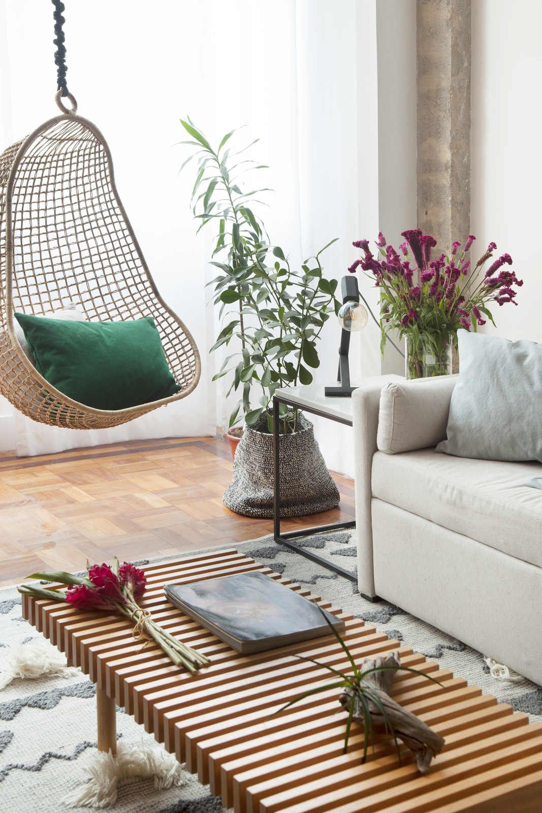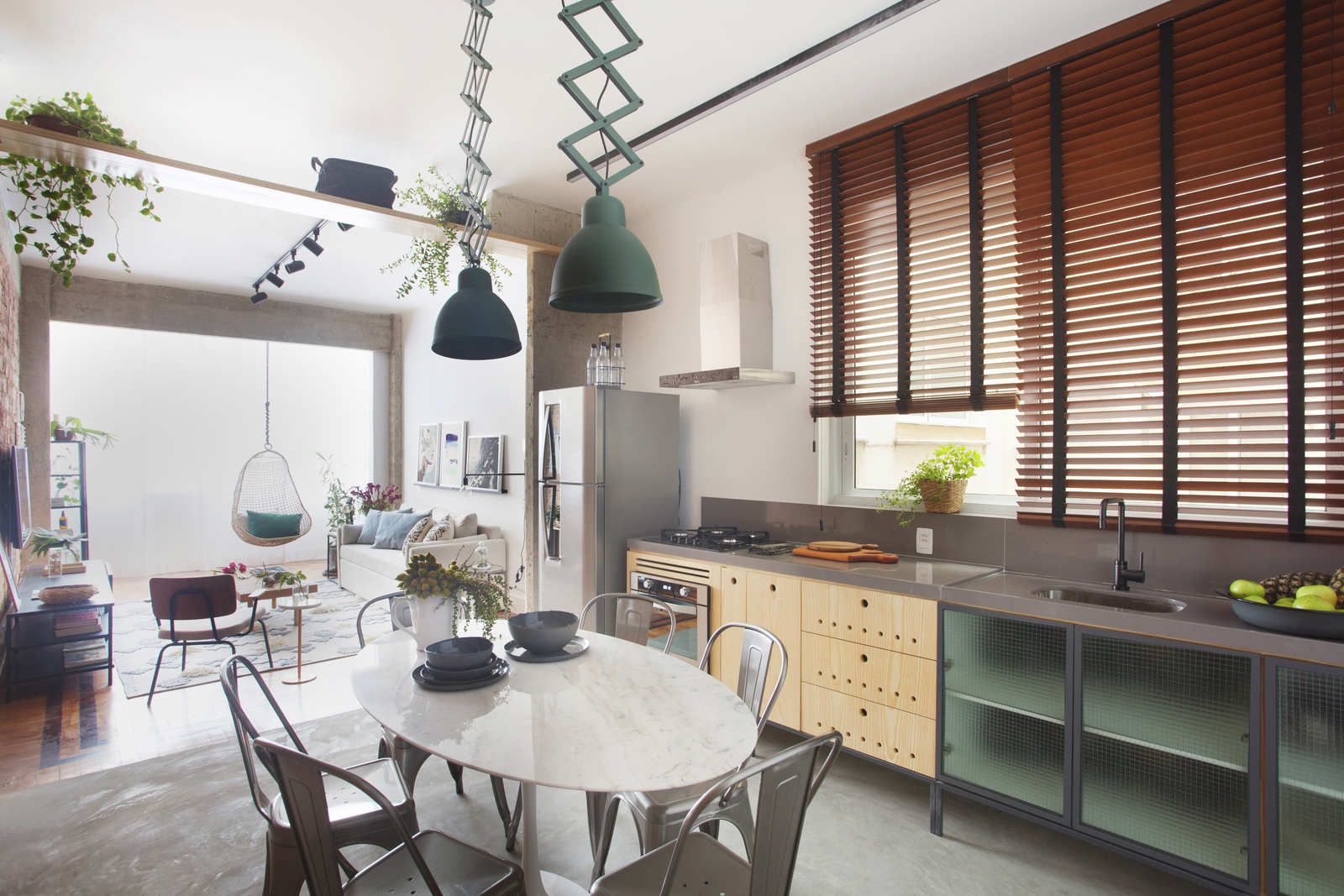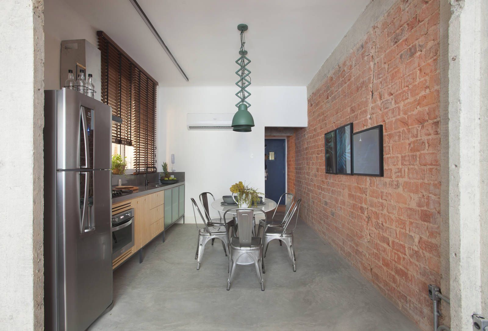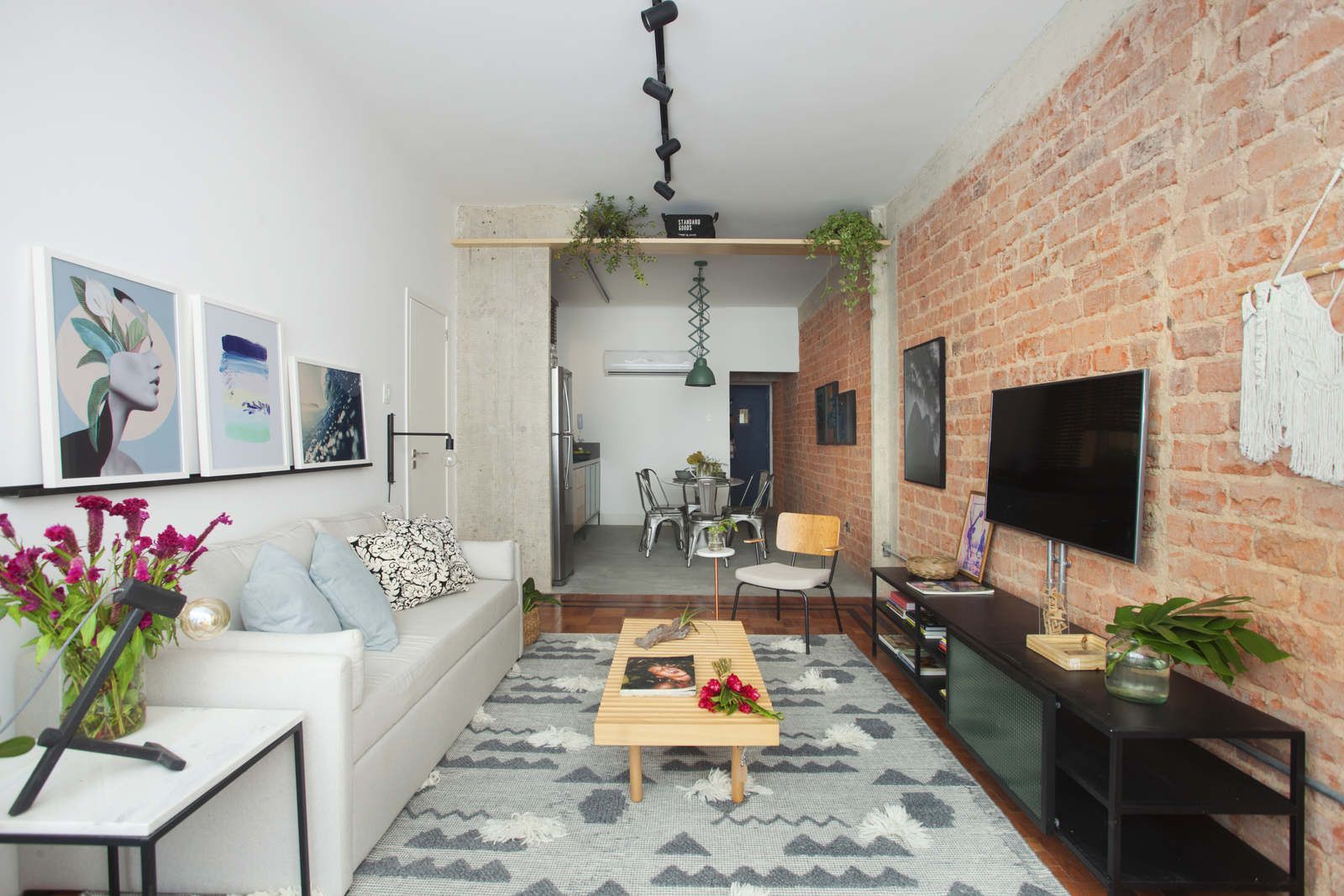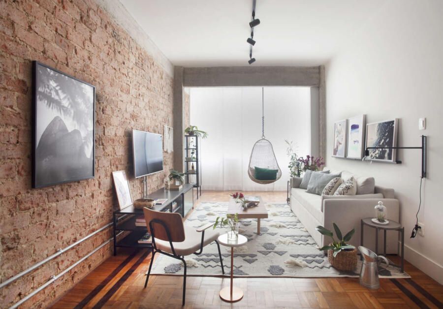 “O maior desafio foi integrar e propor a melhor solução para deixar a luz entrar e proporcionar uma boa circulação para os ambientes. Inverti cômodos de lugar trazendo luz para dentro dos espaços e descasquei parte das paredes, deixando à mostra tijolinhos maciços e a estrutura de concreto existente.”