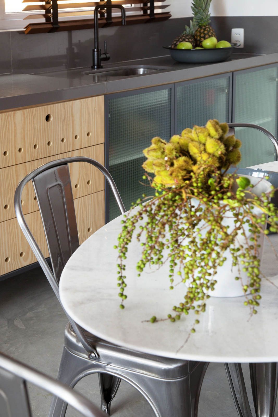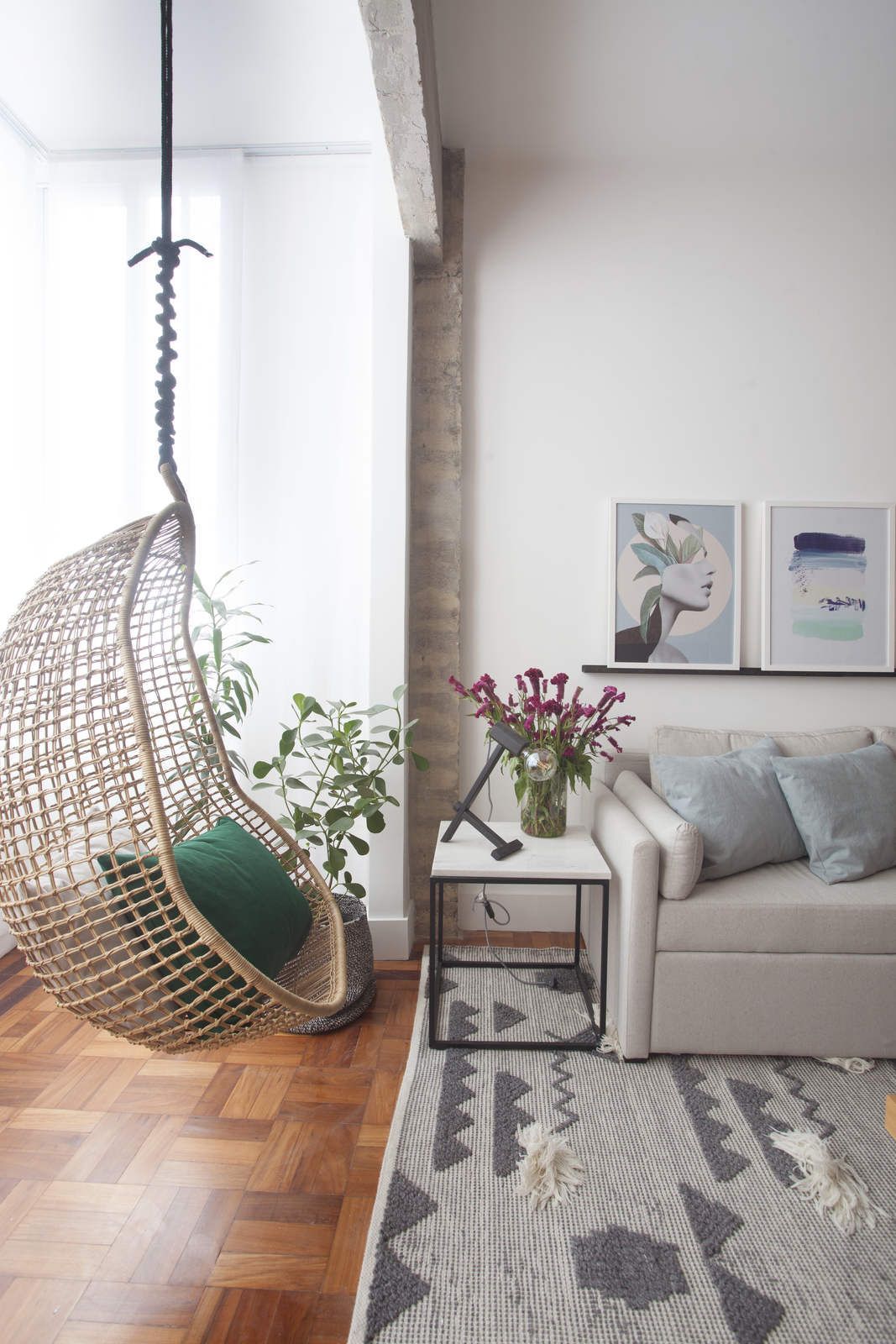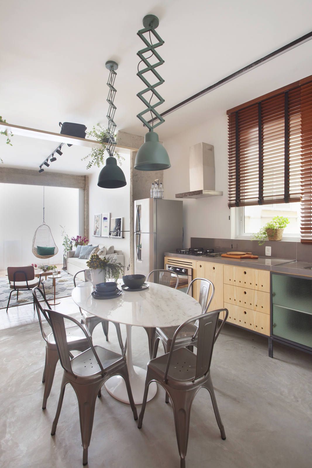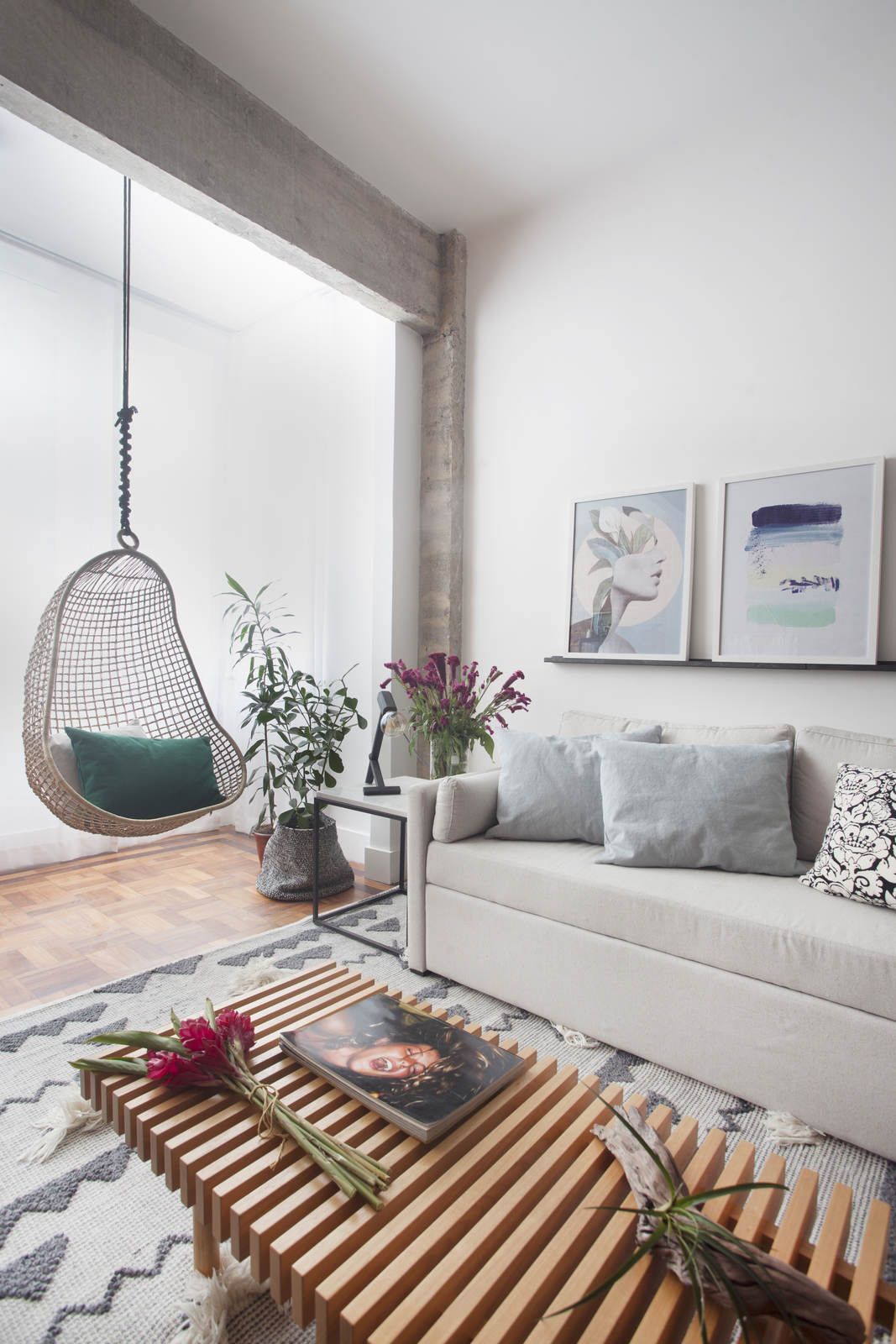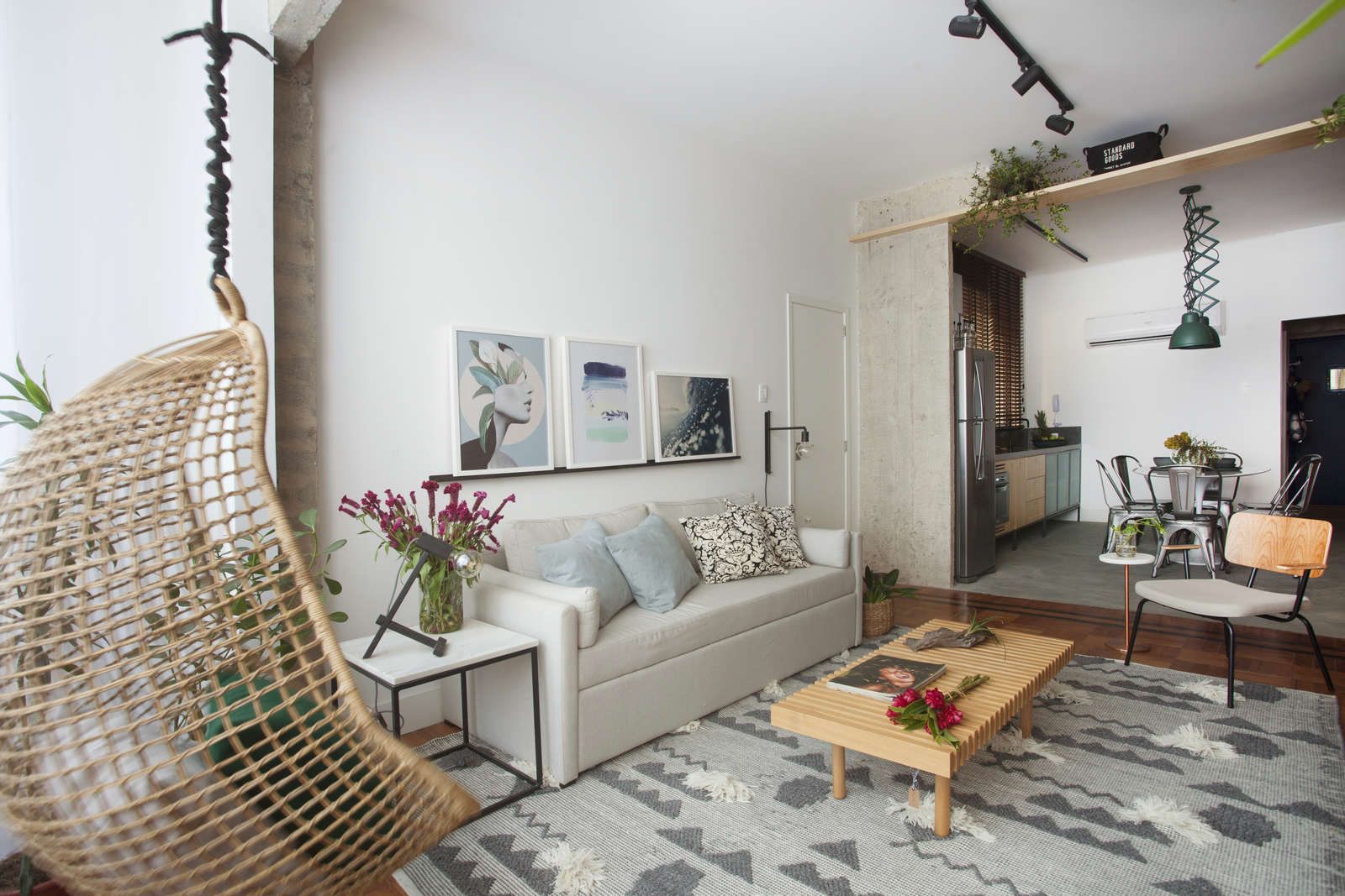 “O maior desafio foi integrar e propor a melhor solução para deixar a luz entrar e proporcionar uma boa circulação para os ambientes. Inverti cômodos de lugar trazendo luz para dentro dos espaços e descasquei parte das paredes, deixando à mostra tijolinhos maciços e a estrutura de concreto existente.”