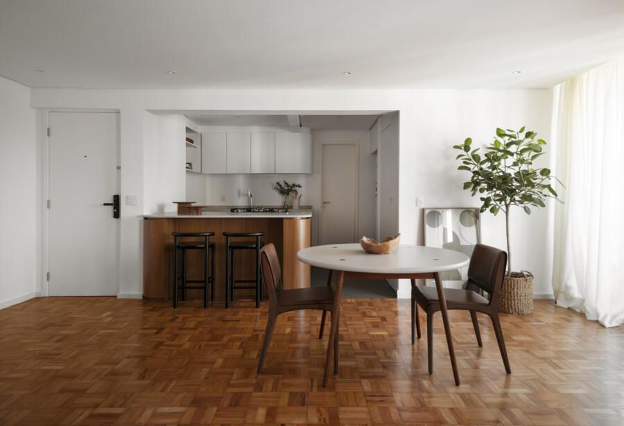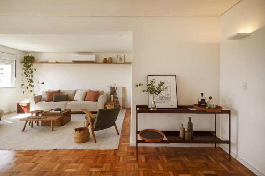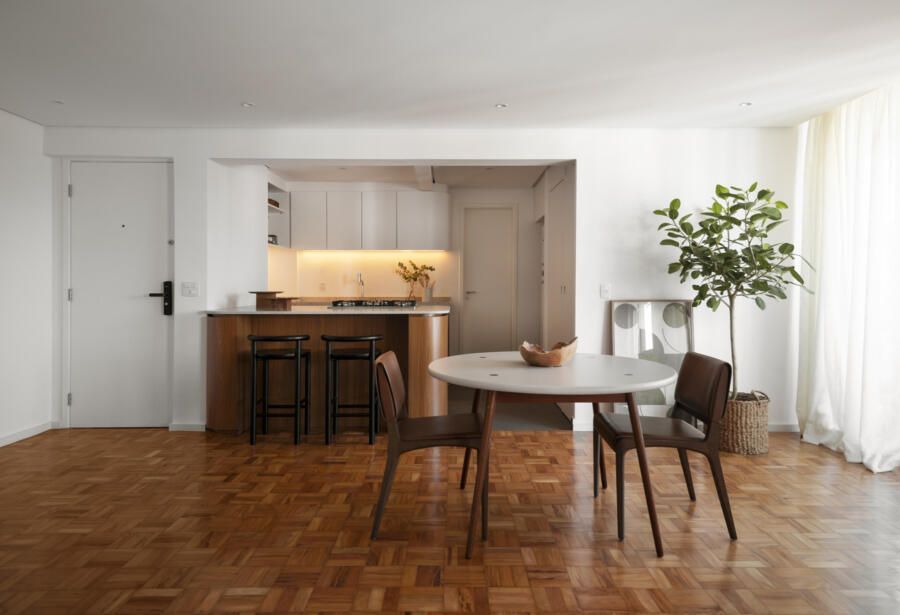 Assinado pela Angá Arquitetura, este apartamento de 86m² na Vila Madalena partiu de um pedido direto e desafiador: criar um imóvel que atendesse perfeitamente ao proprietário, mas que também pudesse ser alugado com facilidade. A possibilidade de mudança para fora do país fez do layout flexível o ponto central do projeto, conduzindo a uma reforma que valoriza amplitude, neutralidade e múltiplas formas de habitar.