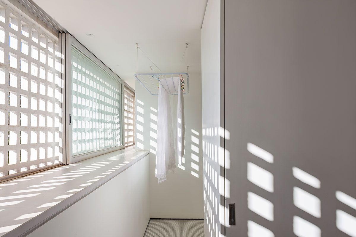 O apartamento está localizado na SQS 308, superquadra modelo de Brasília. Lucio Costa implantou os prédios de forma que todos os moradores tivessem privacidade. O estar e os quartos são virados para o nascente. A luz do poente nas áreas de serviço é filtrada pelos cobogós, blocos brancos desmaterializados e flutuantes sobre o jardim de Burle Marx que são percebidos pelos janelões deste apartamento de 115m2.