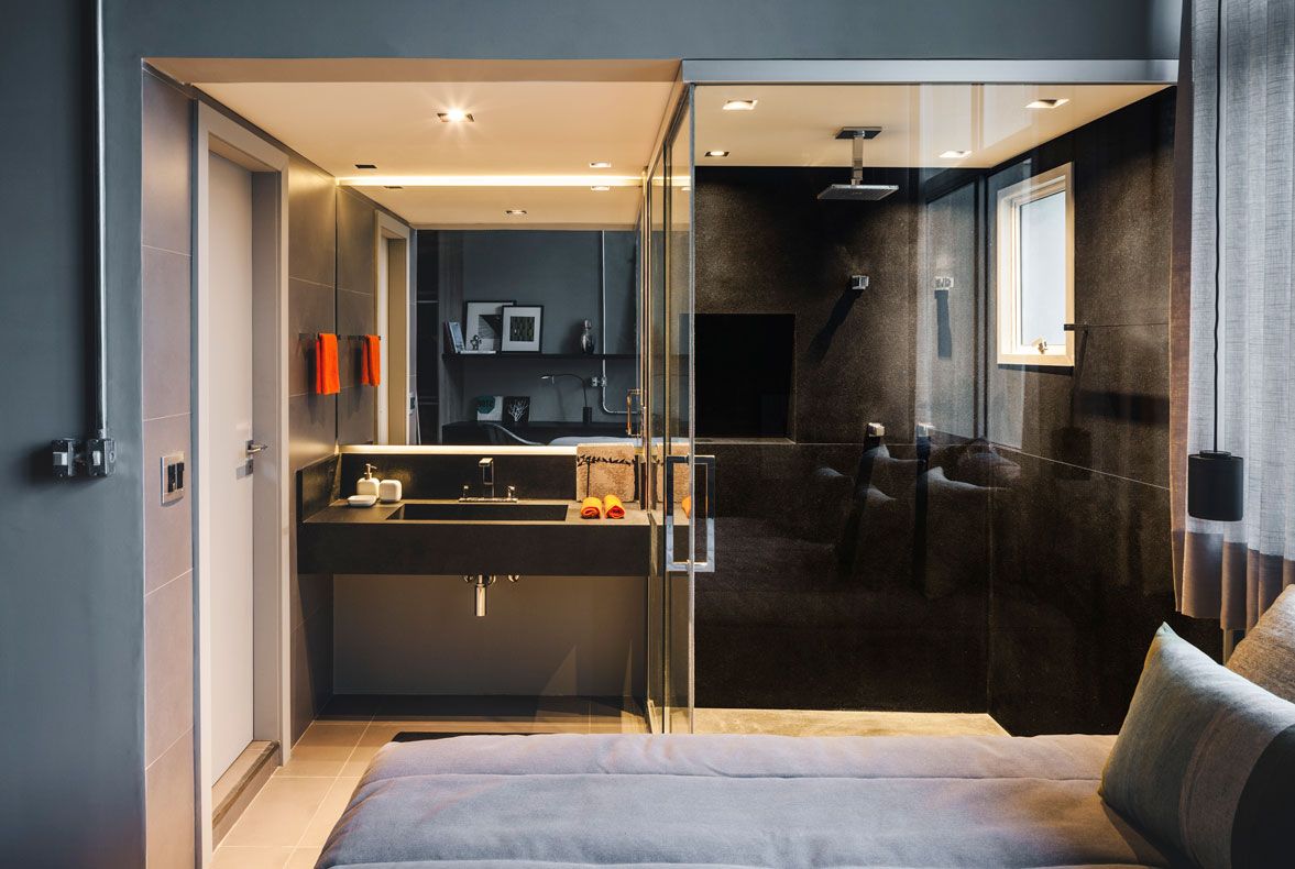 Uma dica do escritório é que um projeto industrial pode e deve ser aconchegante, não precisa ser frio e rústico. Basta mesclar o estilo com a iluminação aparente, paredes cinza e a madeira certa para dar aconchego.