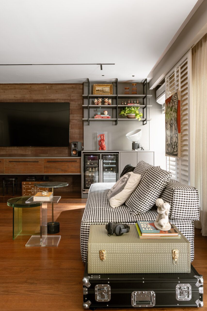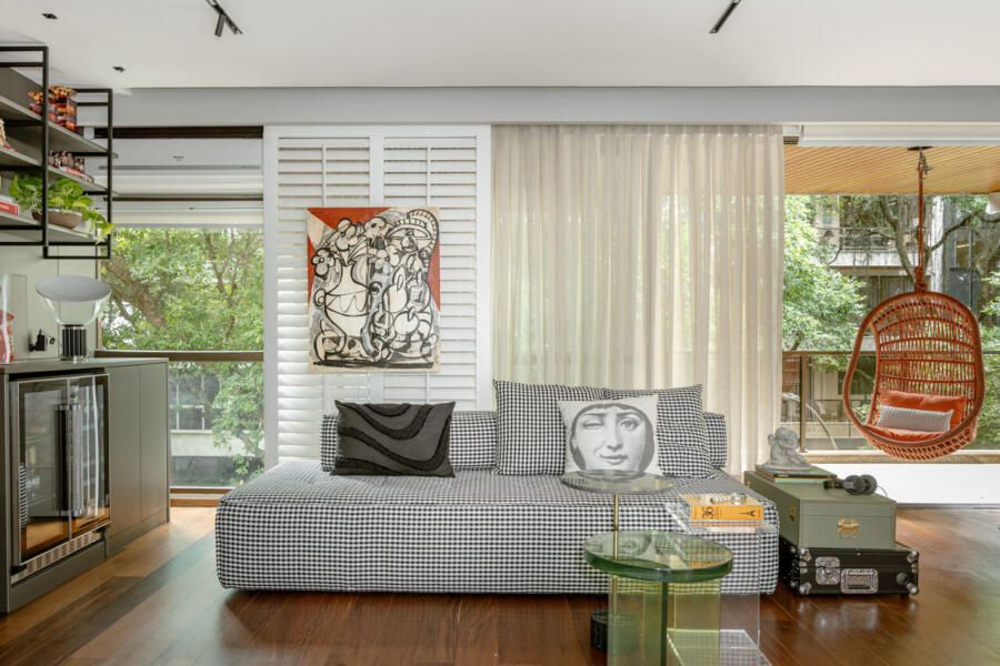 O ponto de partida para este apê veio de uma frase que costuma acompanhar quem entra nele: “Esse apartamento não poderia ser de outra pessoa”. Nada de soluções neutras, homogêneas ou genéricas: os moradores buscavam uma casa com personalidade.