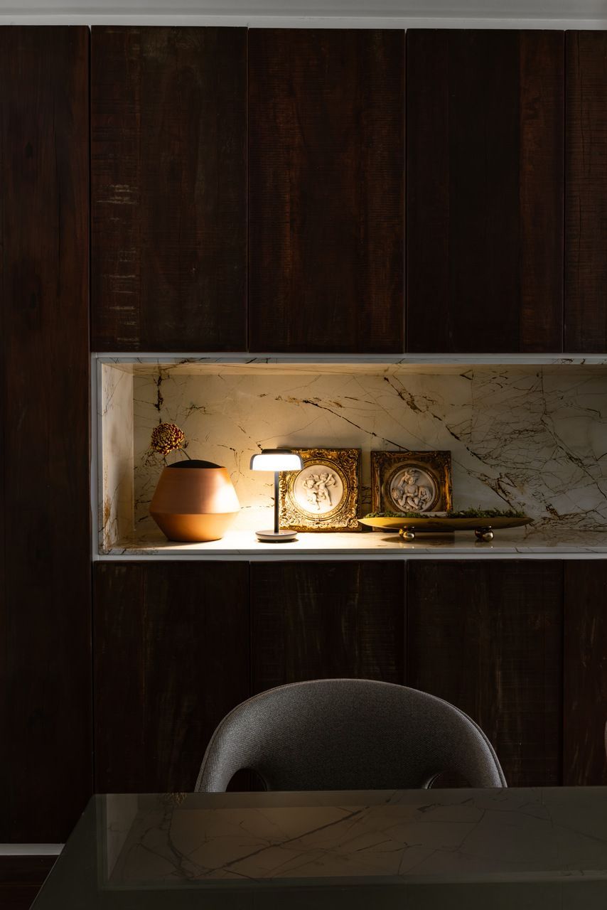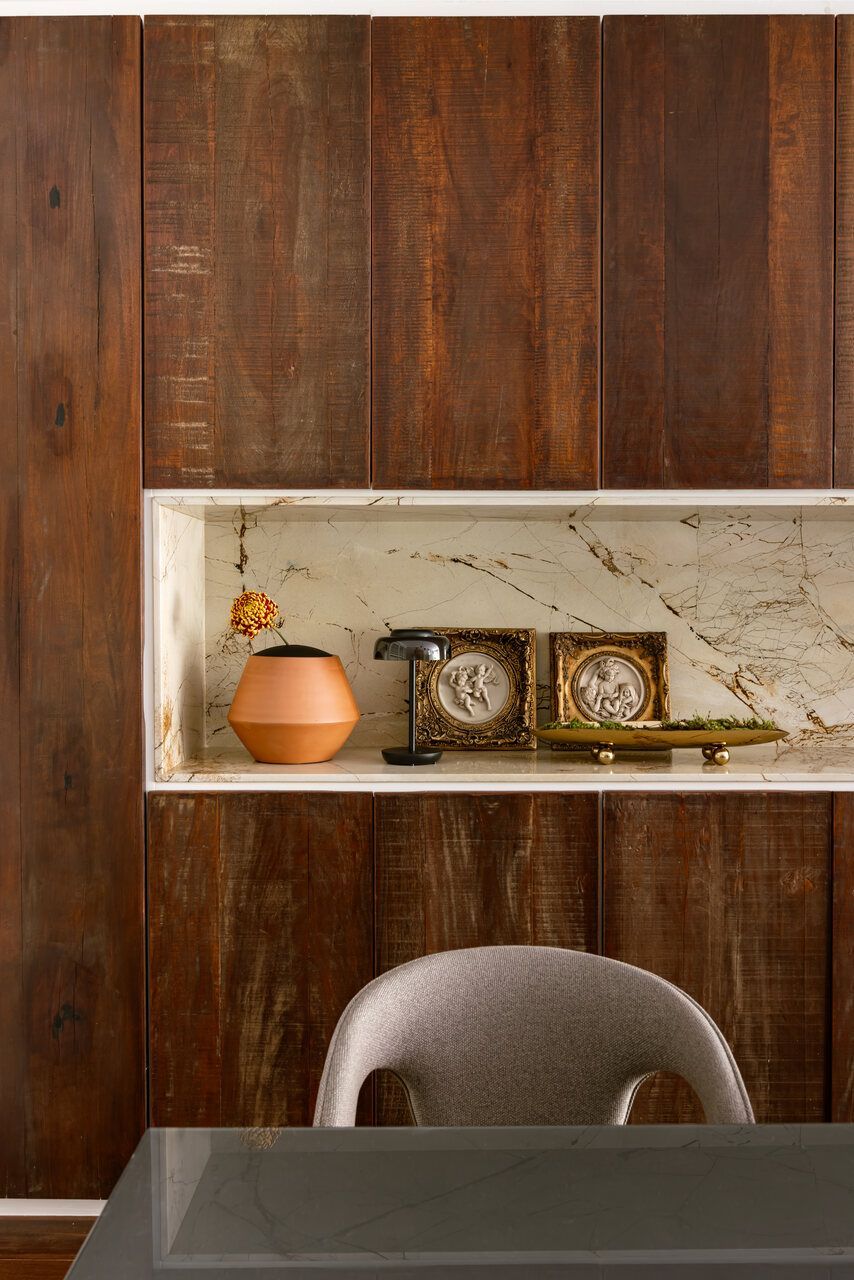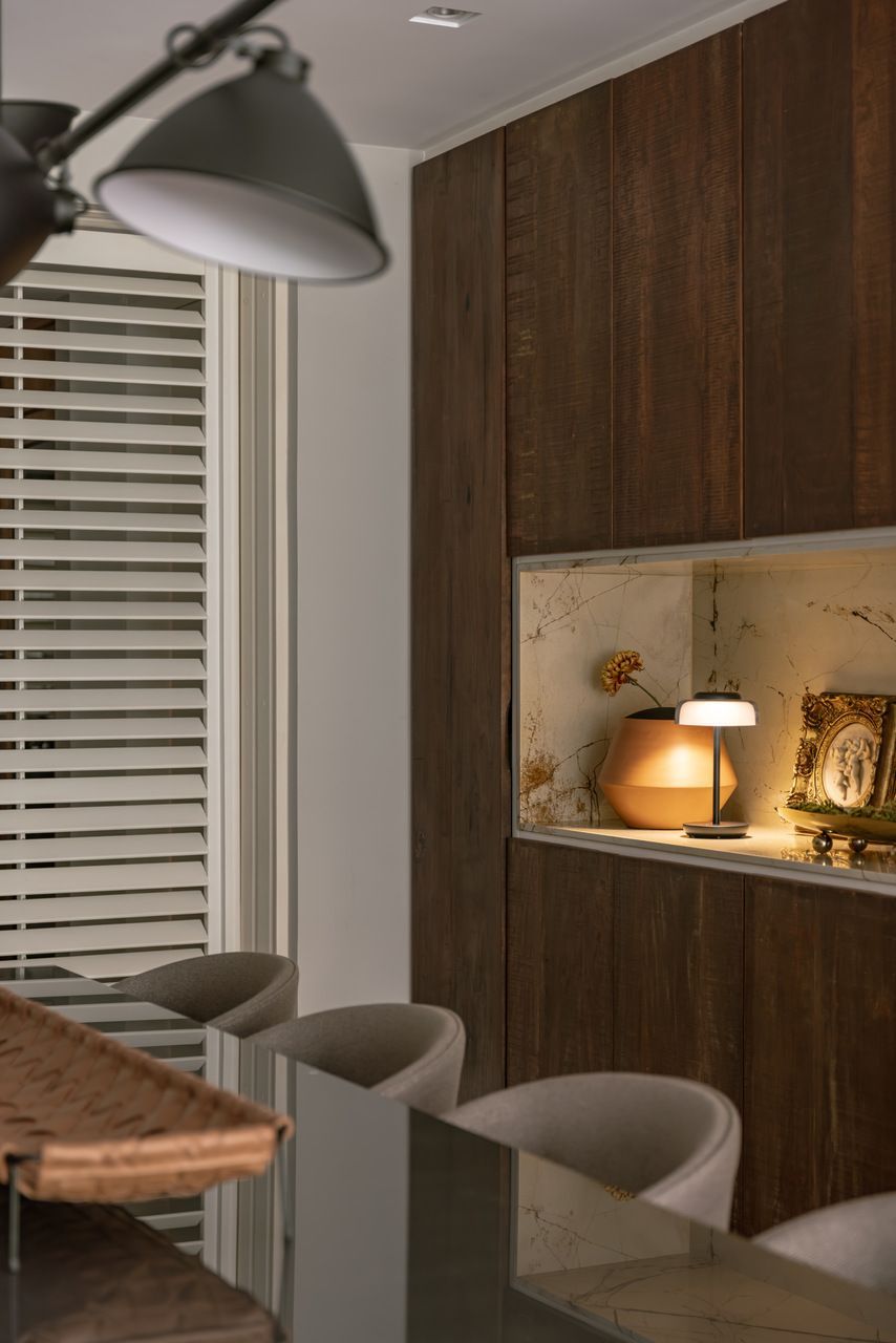 “Desde o início do projeto, os clientes deixaram claro que tinham um gosto mais peculiar e que isso precisava ser respeitado. Não se tratava de nada exótico ou extravagante, mas de uma casa que não poderia ser óbvia, nem neutra. Ela precisava ter identidade, história, memória. Seis meses depois da entrega, recebi uma mensagem deles chegando de viagem. Mandaram algumas fotos aleatórias do apartamento e agradeceram novamente pelo projeto. Foi um daqueles momentos em que você sabe que acertou. Quando o cliente entra em casa depois de um longo período e se reconhece de verdade ali. Hoje, a casa tem a cara e a história deles.”