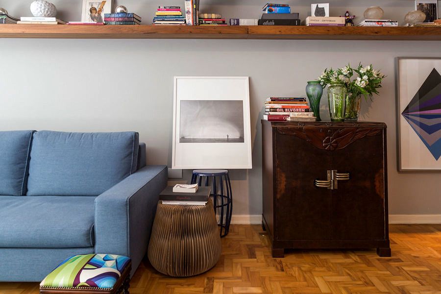O projeto teve como ponto de partida uma compra grande em um antiquário, mesmo sem saber onde cada peça seria colocada. Essa compra foi muito importante, pois ela deu o tom único que a cliente queria e aproximou ela da arquiteta. Uma das dicas do escritório é garimpar, garimpar muito! Pesquisar e não ter medo de misturar elementos, assim é possível ter um ambiente autêntico e único. Fotos: Mariana Camargo.