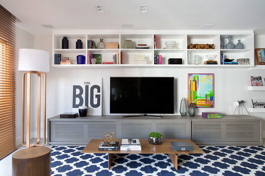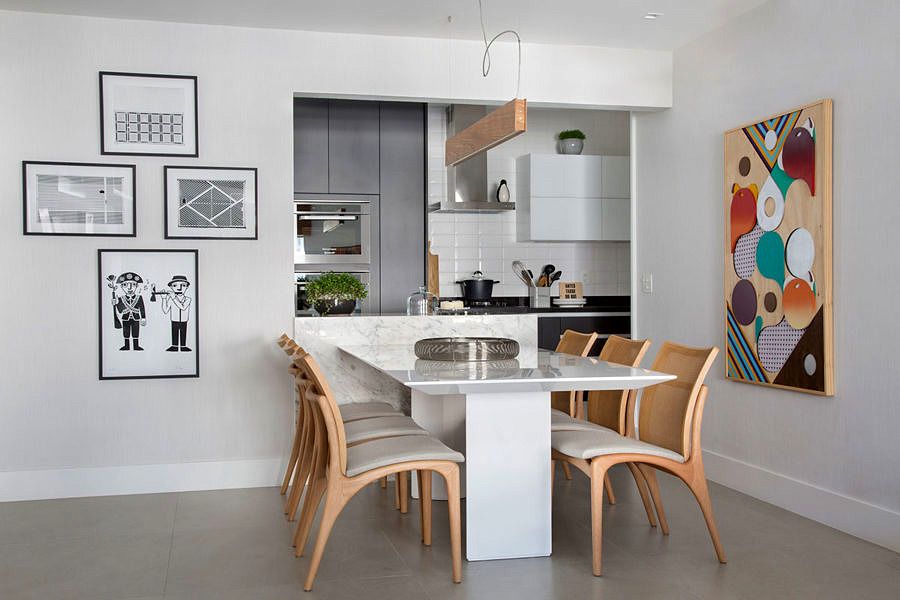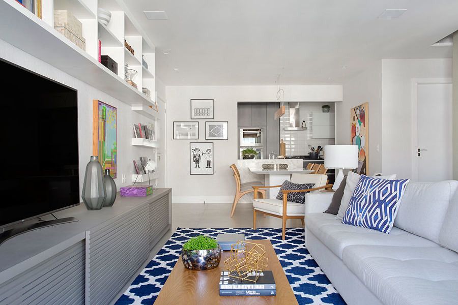 O apartamento ficou contemporâneo e bastante prático para que o morador possa usufruir de todos os espaços sem muita preocupação com manutenção e limpeza.