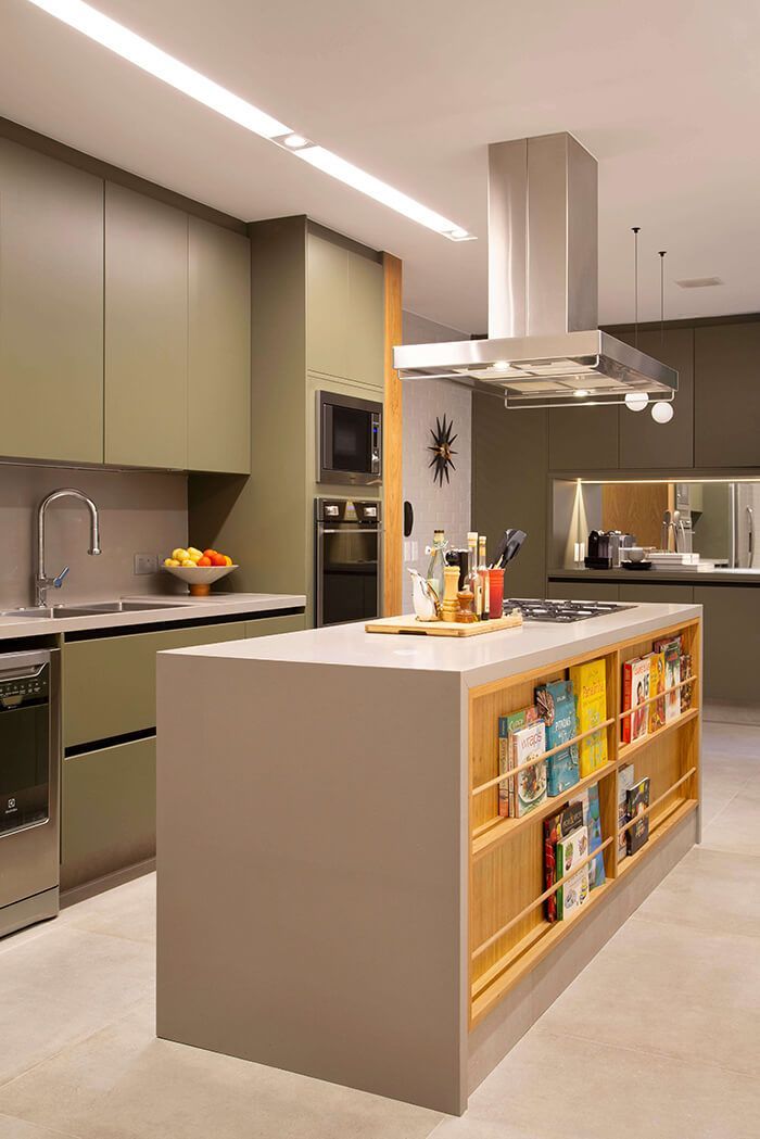 Como a cliente ama receber, em dias de festa, fica tudo à mão e bem organizado, dispensando o habitual vaivém à cozinha nessas ocasiões.