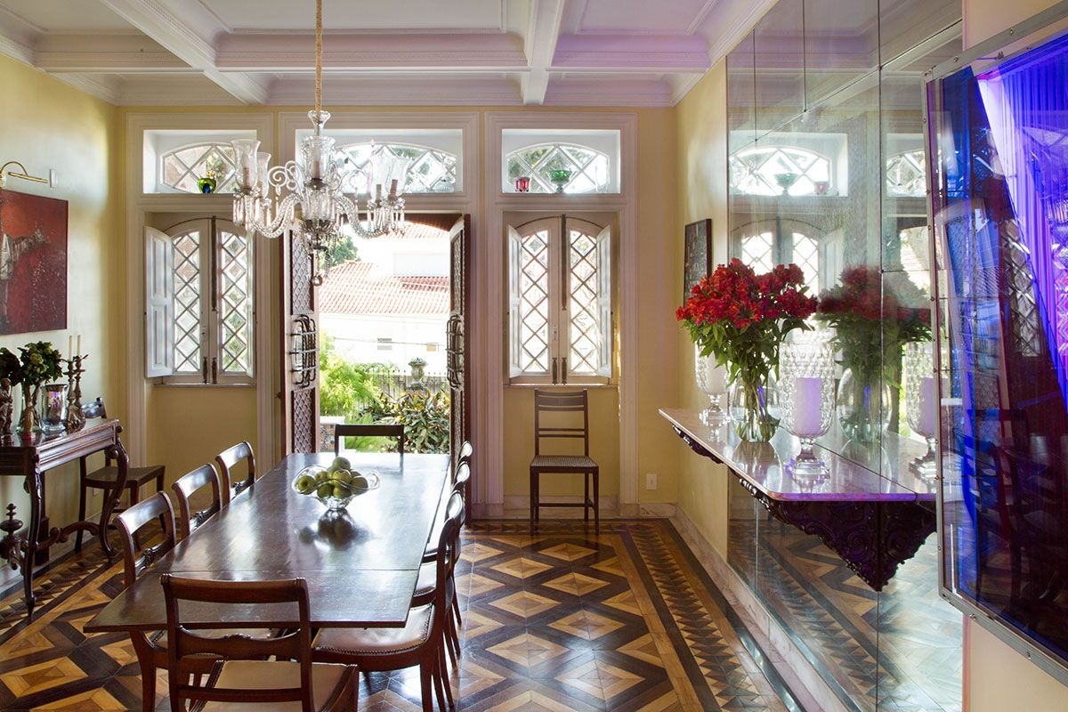 Em apenas quatro meses, Viana atualizou os interiores da construção de 500m², preservando sua atmosfera residencial clássica e romântica e boa parte do mobiliário original, mas imprimindo ao decór o charme e o despojamento tipicamente carioca.