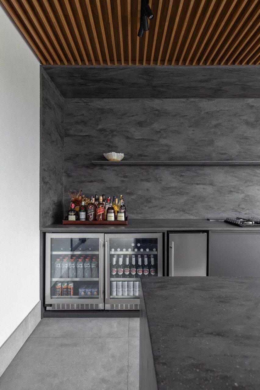 O projeto se iniciou pelo espaço da Adega, que seria e é o xodó deles hoje. A integração total para o espaço Gourmet, Cozinha e sala de estar, fez com que a Adega brilhasse no conjunto geral.