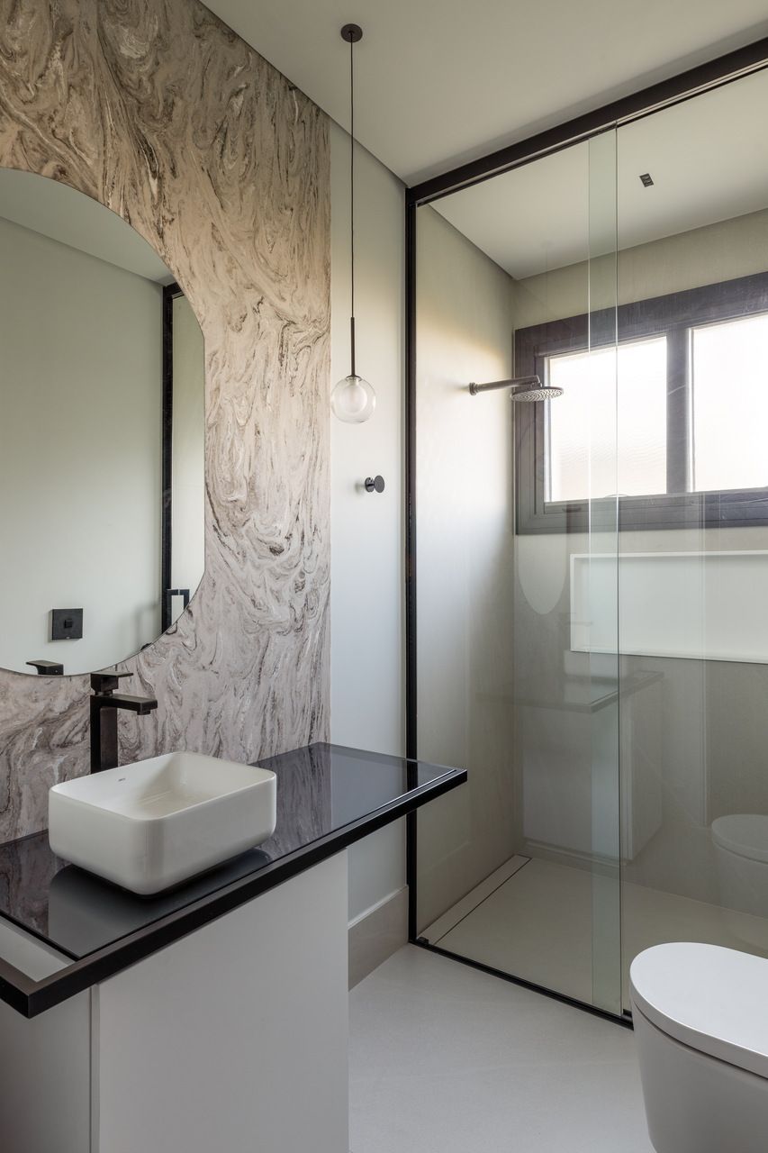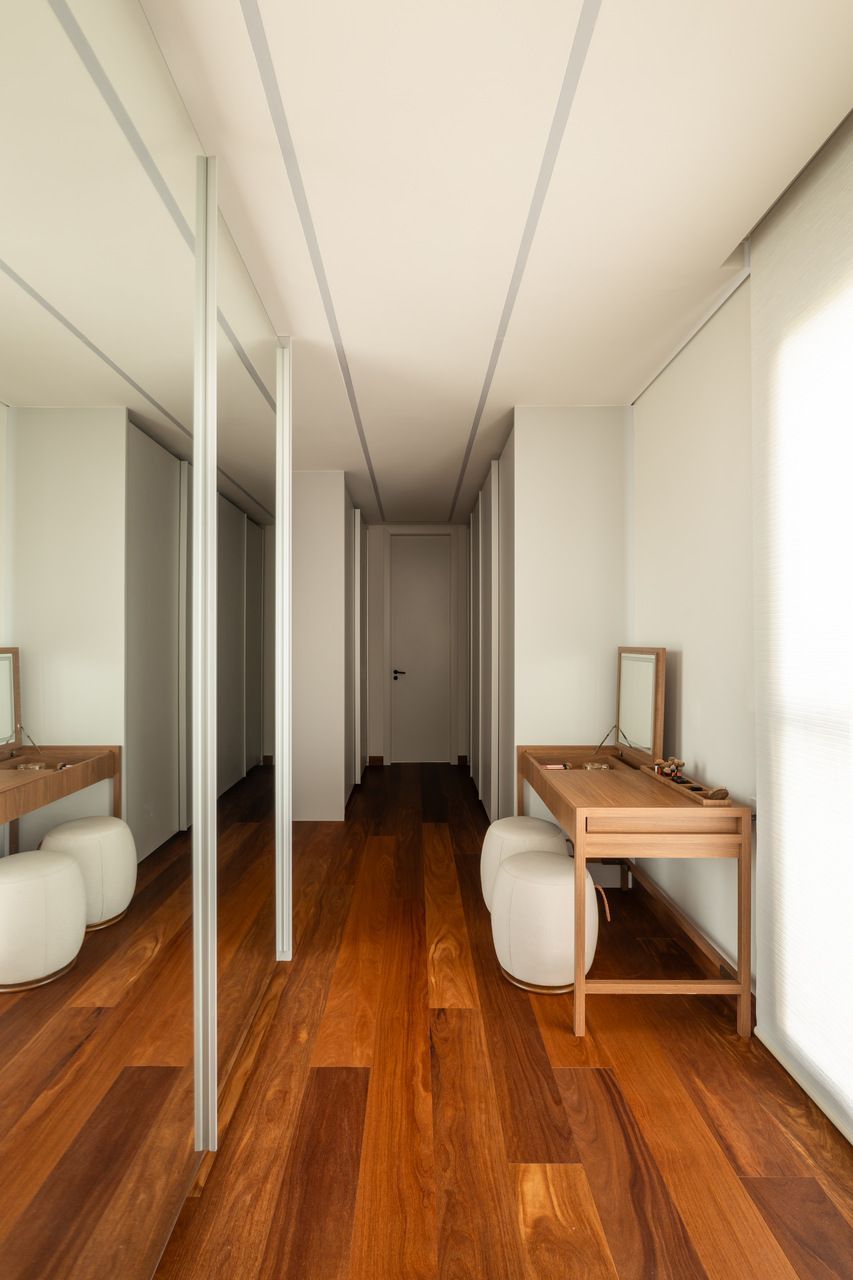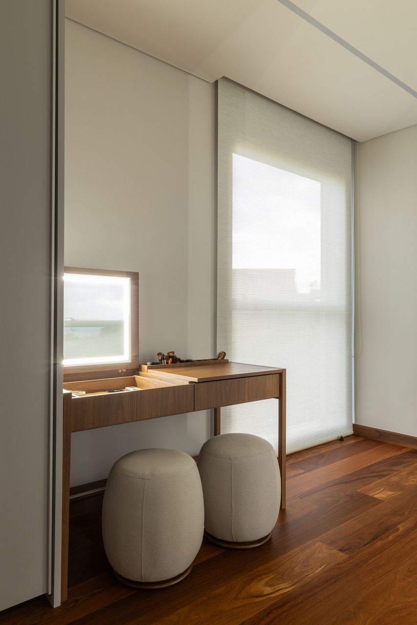 O principal desafio foi chegar num projeto de interiores que atendesse com funcionalidade e praticidade o lifestyle da família. O casal tem um filho e mais dois enteados, então foi criada cada suíte com um estilo, seguindo a característica de cada um.