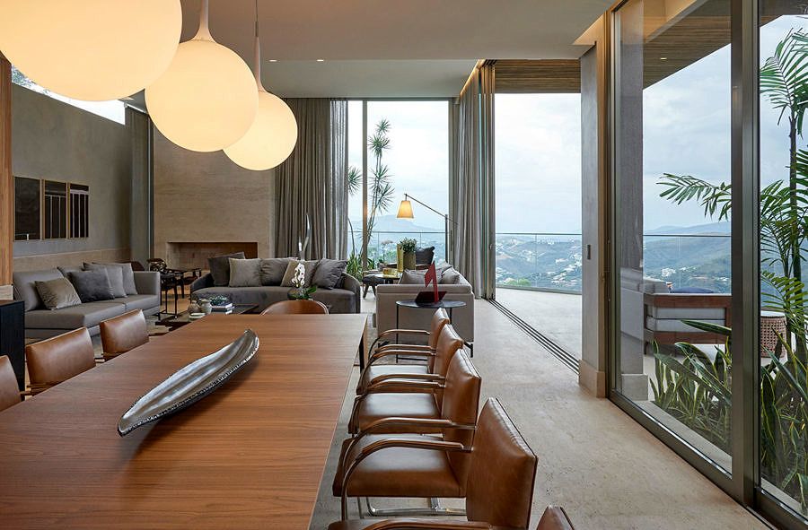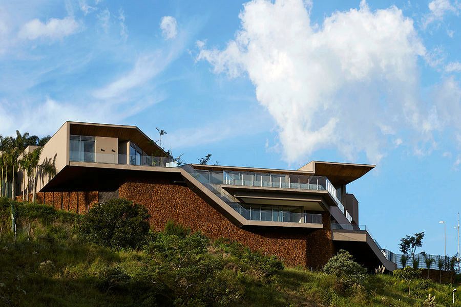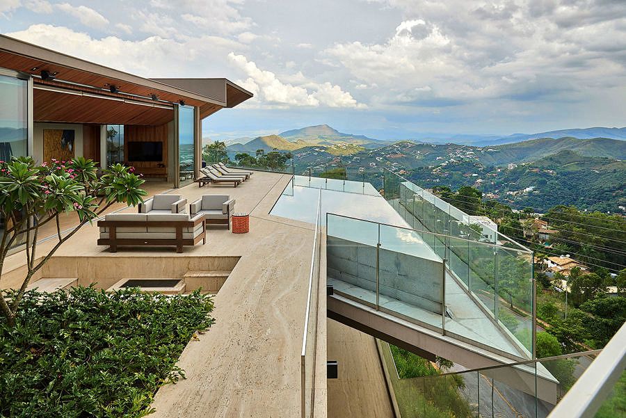 O terreno com 1.400 m² fica em Nova Lima, próximo a Belo Horizonte, uma região montanhosa, em que os terrenos apresentam topografia bastante acidentada. O projeto se estende no sentido das curvas de nível, procurando avançar o menos possível sobre o fundo do terreno.