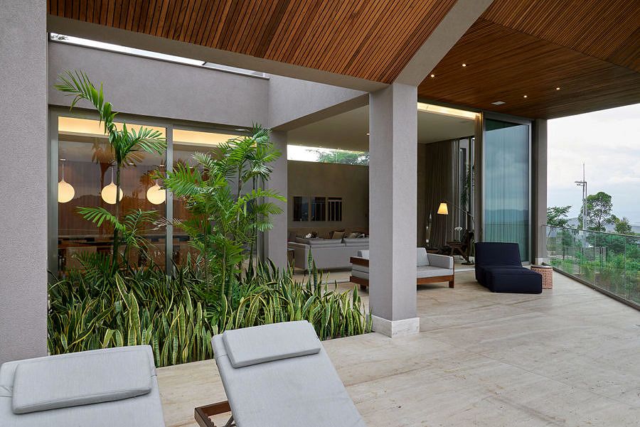 O projeto do escritório Anastasia Arquitetos visava criar uma casa que se inserisse de forma harmônica e não agressiva no terreno, e aproveitasse da melhor forma possível os recursos, que são sua orientação, a bela vista das montanhas ao sul, e a sua topografia, que, apesar de extremamente agressiva, permitiu aos profissionais criar privacidade sem necessidade de grandes muros.