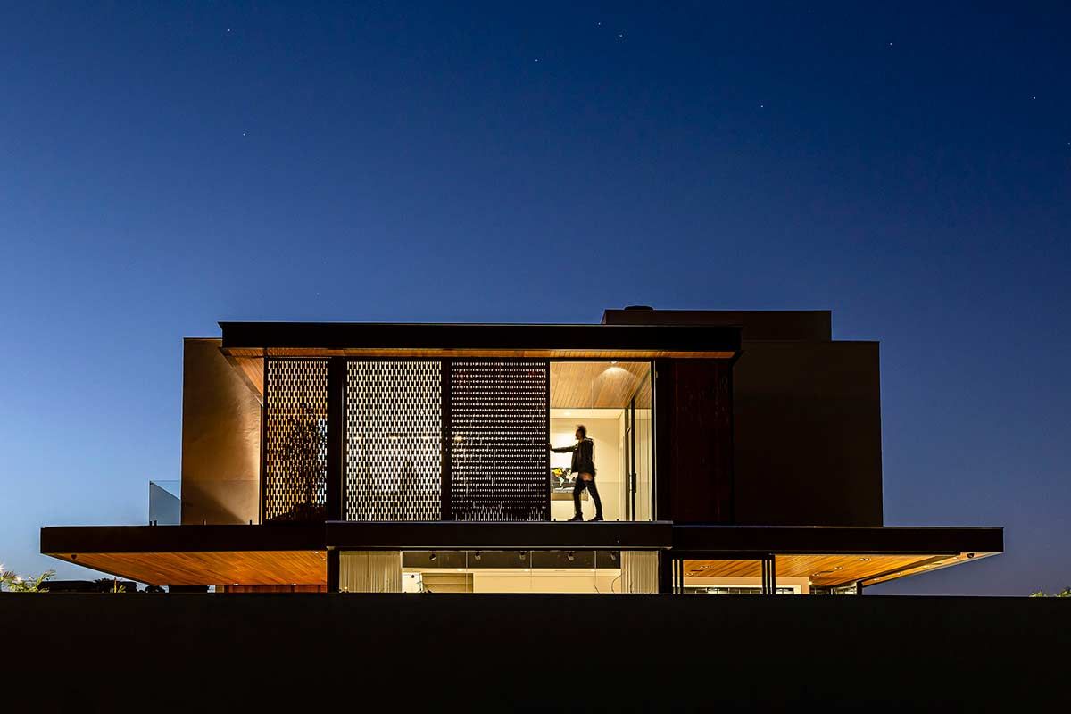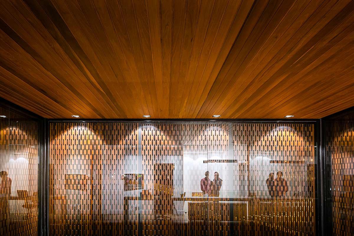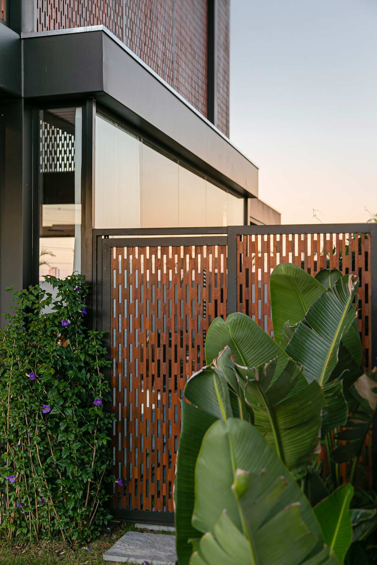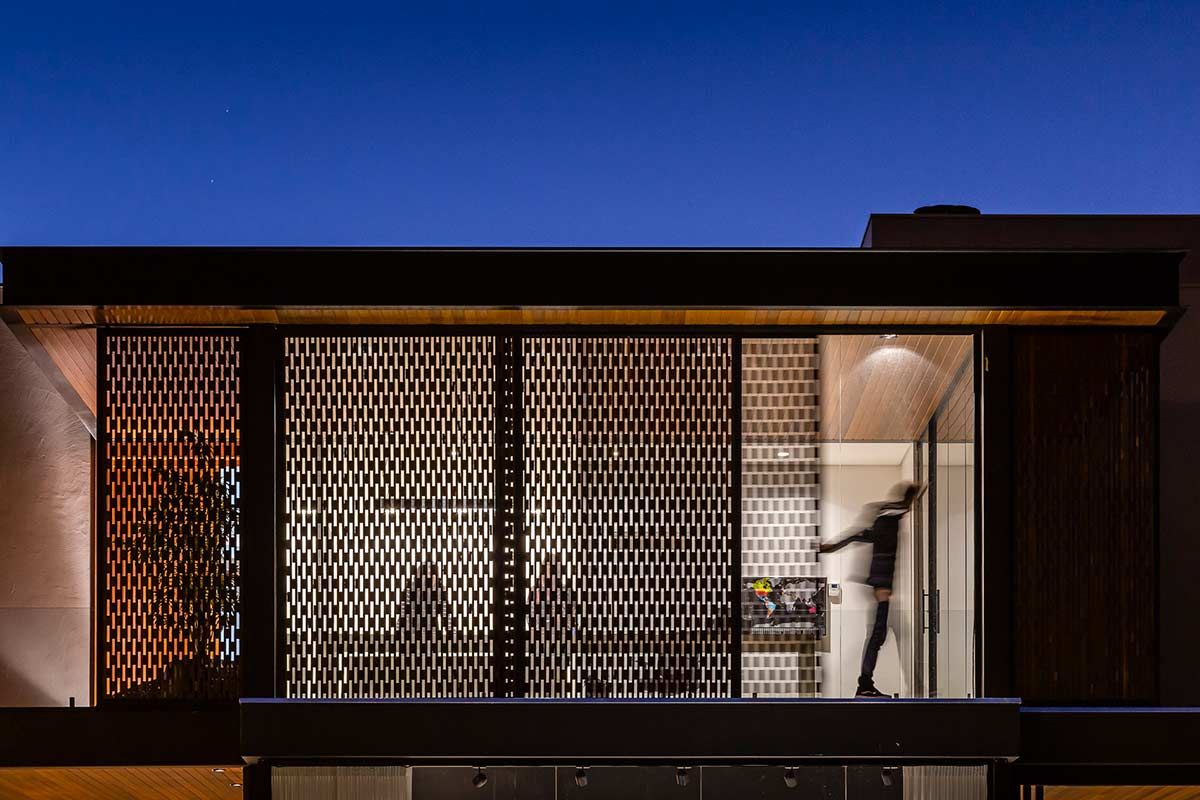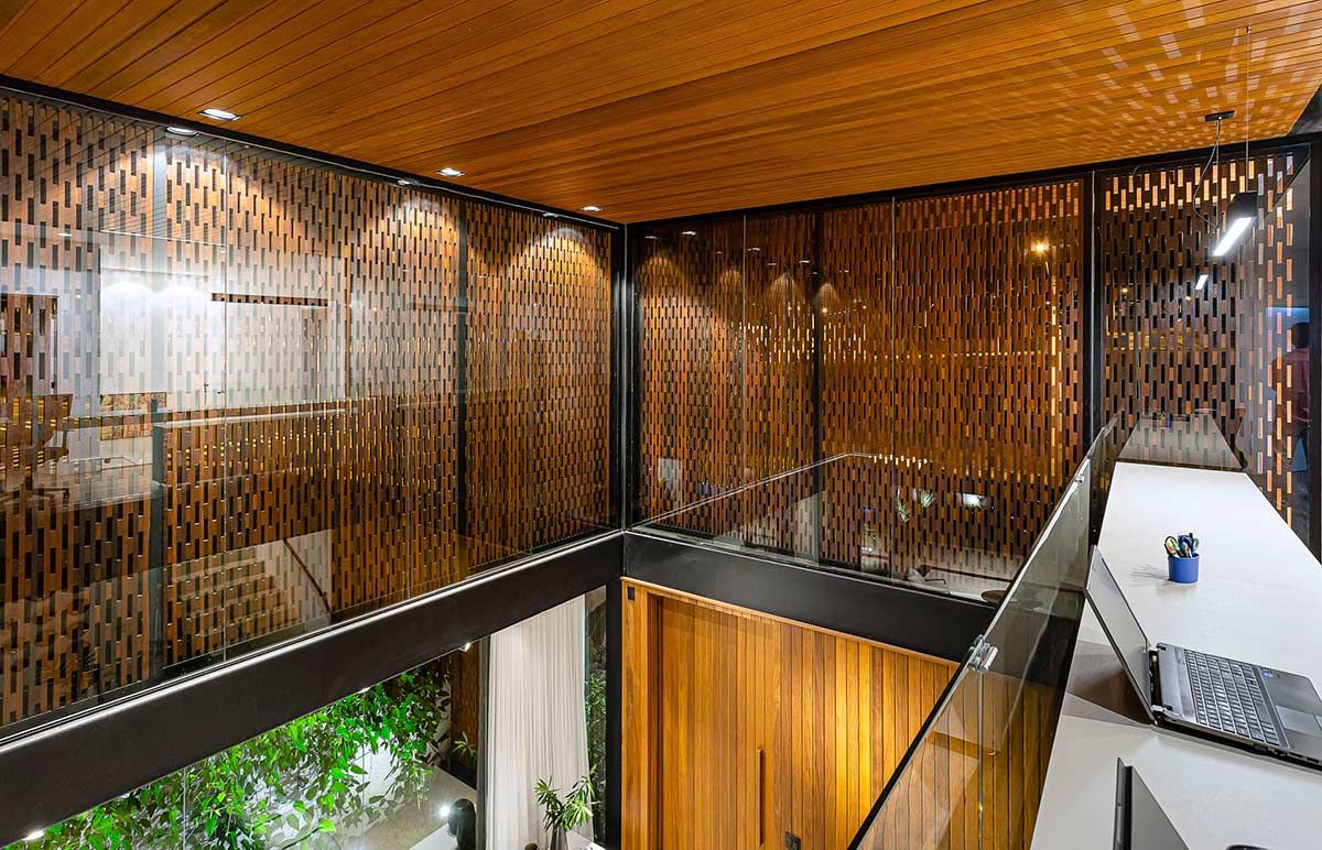 O uso de muxarabis agrega um movimento como forma de impedir que o sol incida diretamente no interior da casa e, ao mesmo tempo, personaliza a estética do projeto.