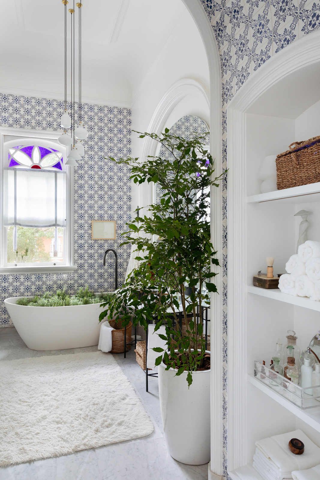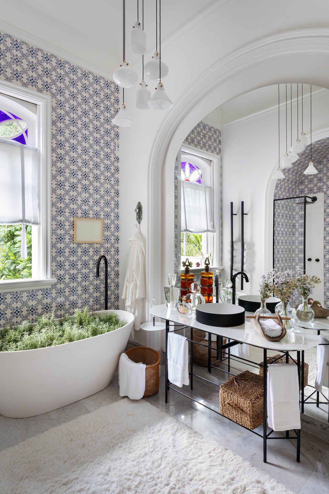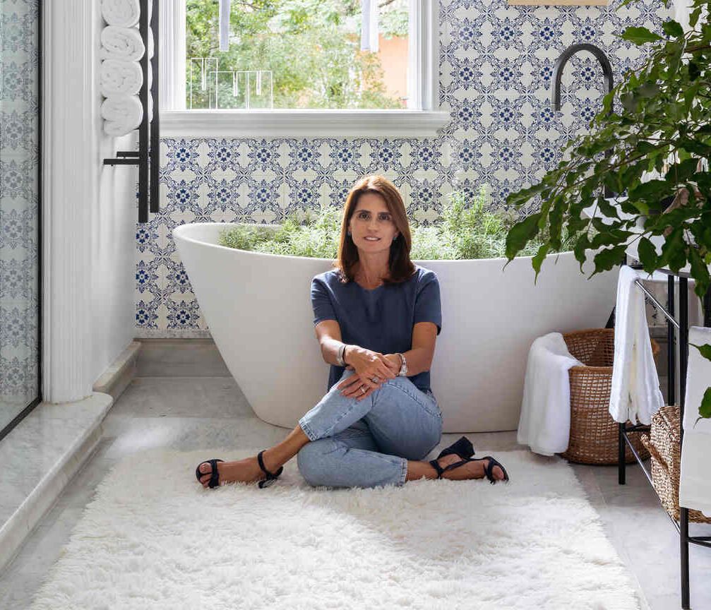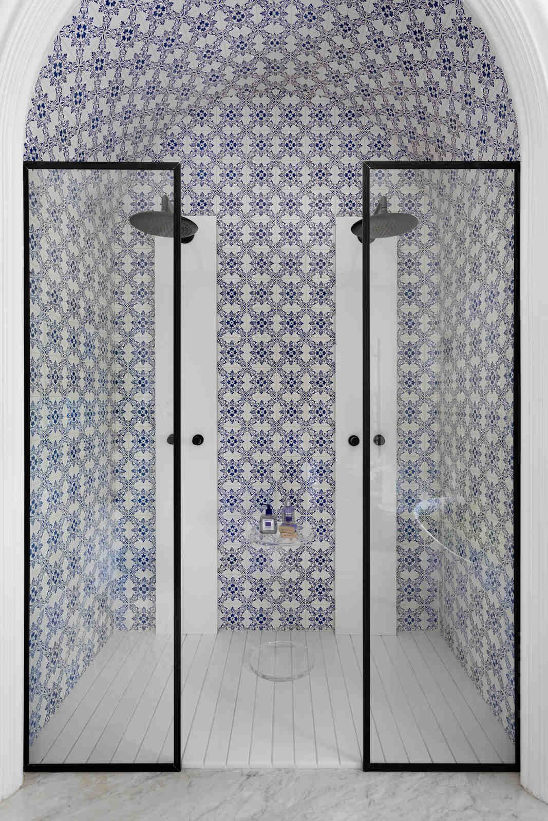 “Um ótimo exemplo são os azulejos portugueses antigos aplicados no banheiro, que nesse novo contexto, agora convivem em perfeita harmonia com metais pretos, geralmente associados ao estilo industrial mais contemporâneo.”