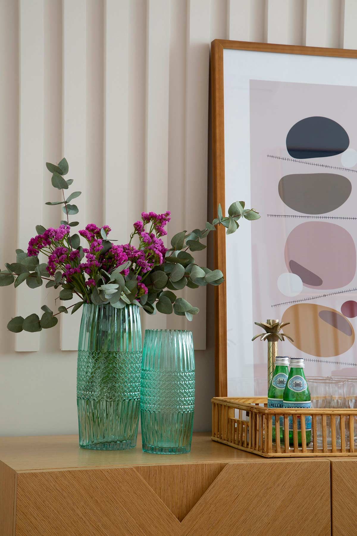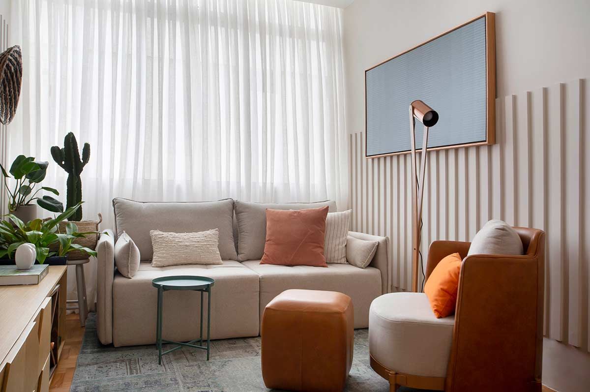 Fazer um projeto com orçamento enxuto foi o desafio aceito pelo Make Arquitetura em um apê no bairro carioca do Flamengo, com vista para as palmeiras da Rua Paissandu. A cliente de 50 anos queria dar um UP na casa, mas, como financeiramente não poderia encarar uma reforma completa, optou por redecorar os cômodos priorizando a sala e o quarto de hóspedes, onde recebe sua família.