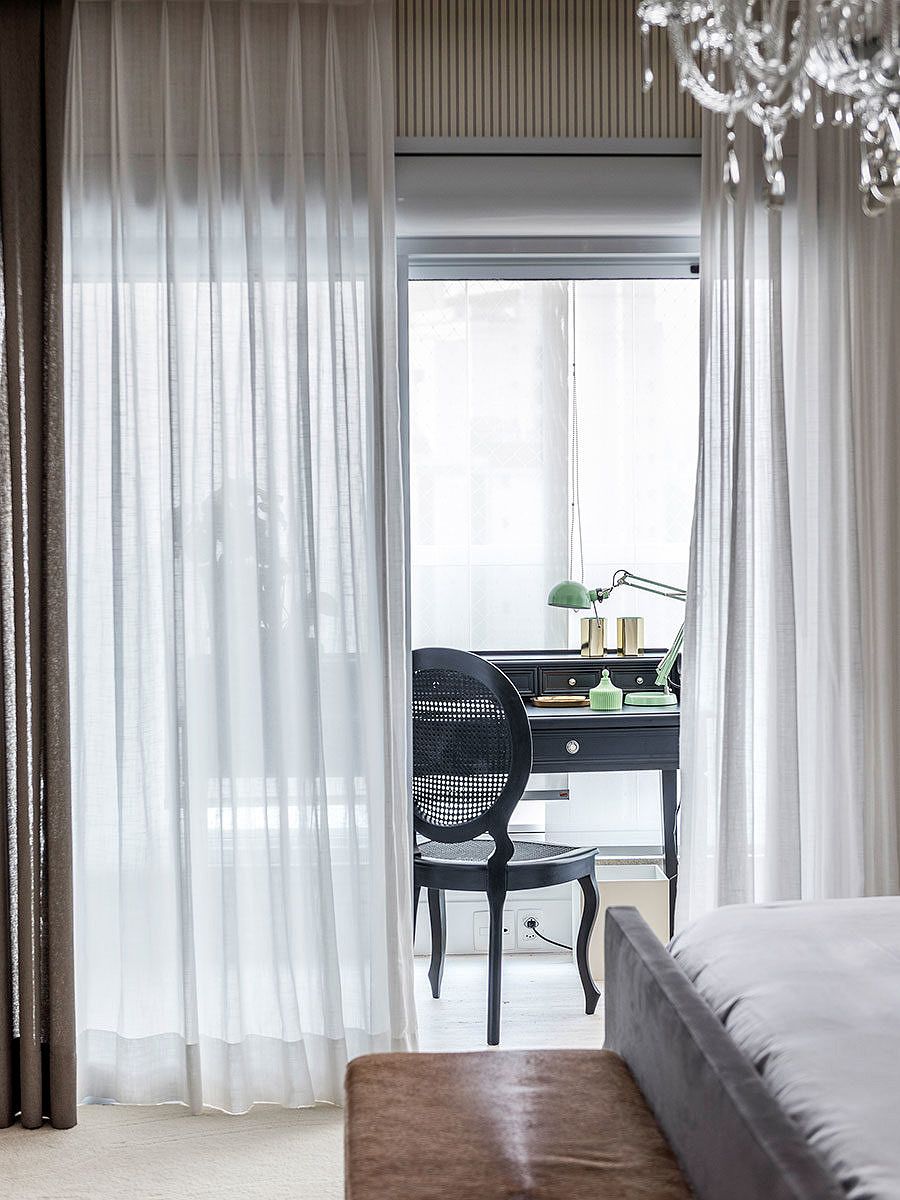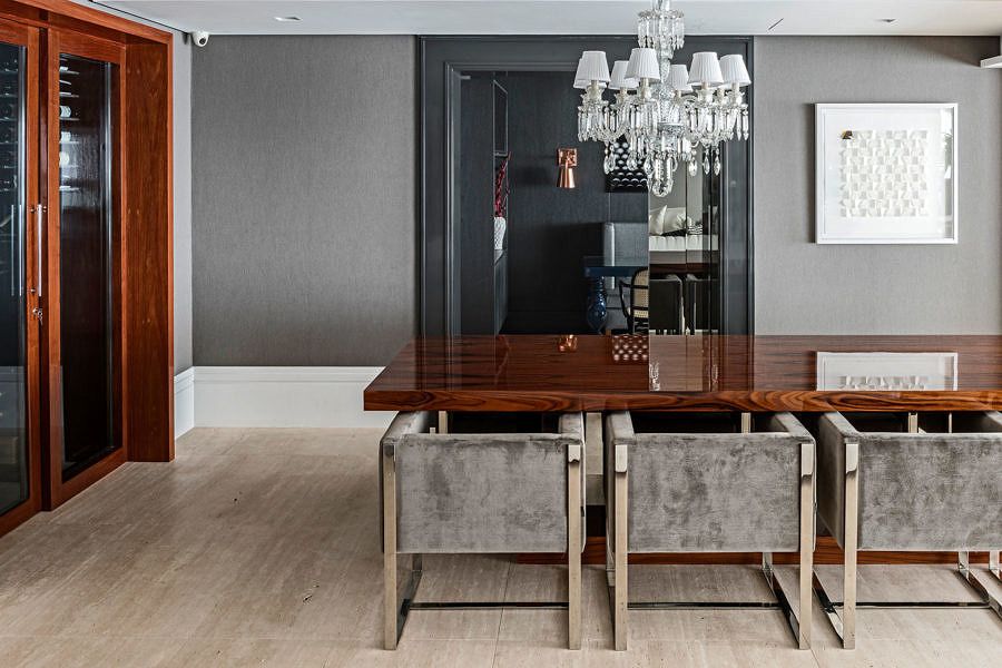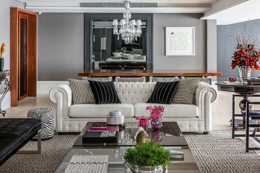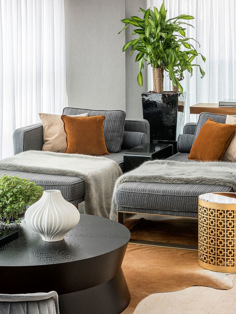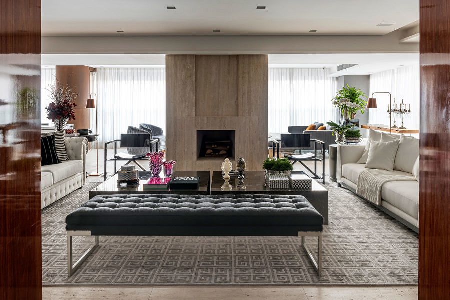 Outro desafio encontrado pelo escritório foi conciliar o design ao conforto e manter a fidelidade do projeto, dos itens principais aos detalhes, da escolha dos acabamentos até os tecidos, tudo em conformidade com o gosto muito especial dos clientes.