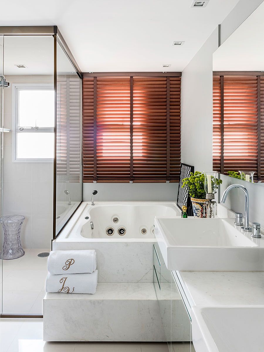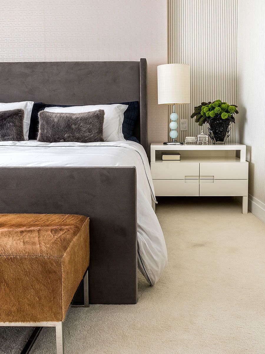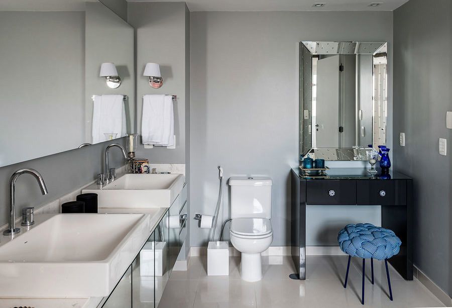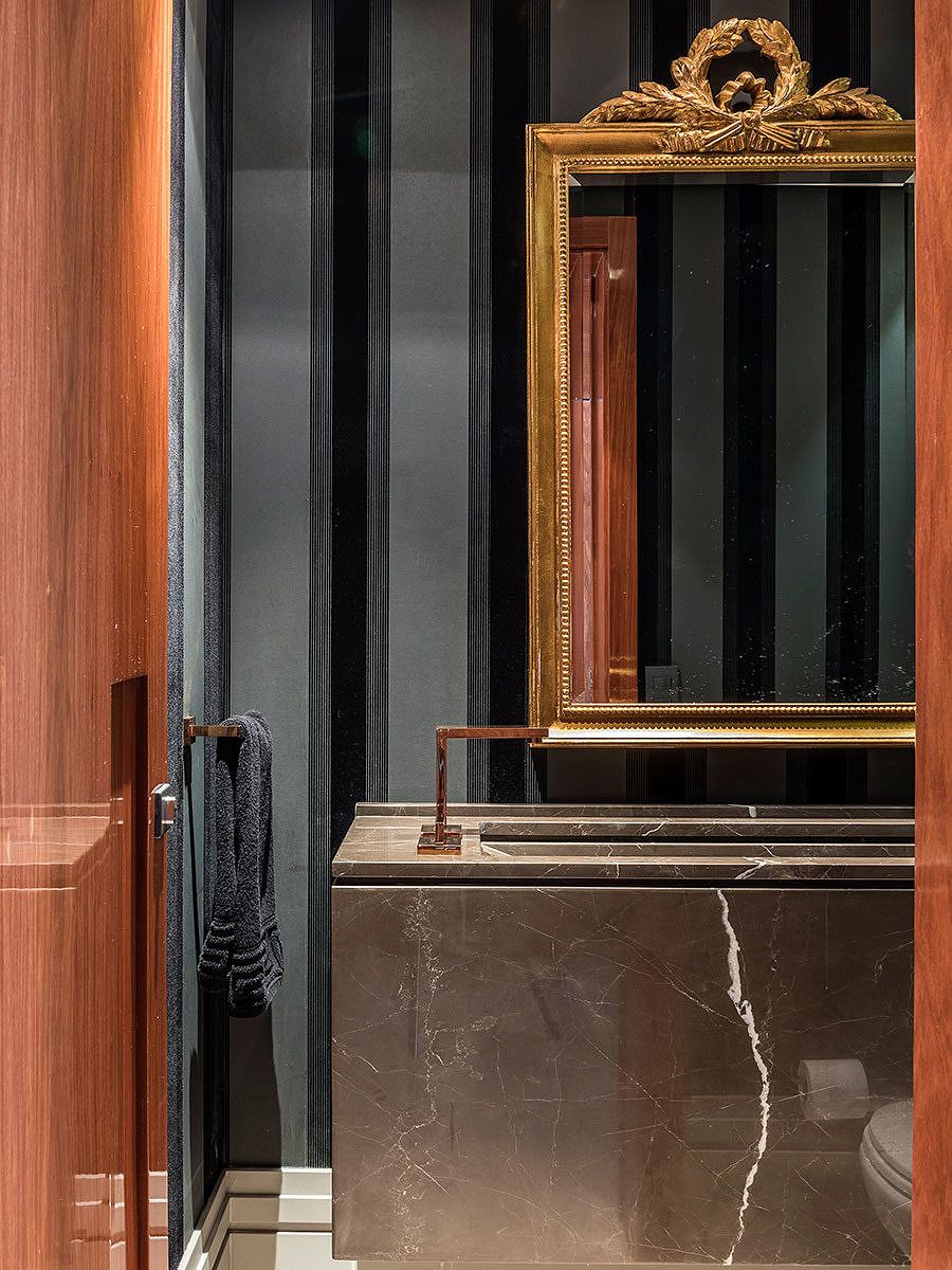 Outro desafio encontrado pelo escritório foi conciliar o design ao conforto e manter a fidelidade do projeto, dos itens principais aos detalhes, da escolha dos acabamentos até os tecidos, tudo em conformidade com o gosto muito especial dos clientes.