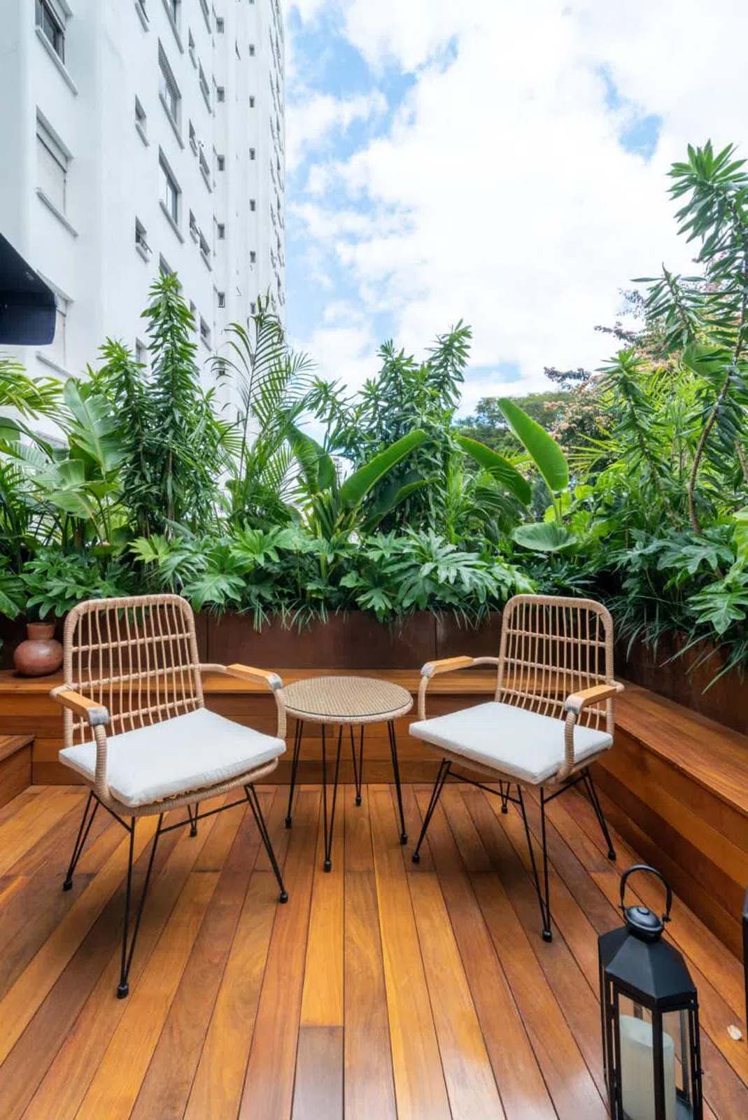 Opções não faltam quando se trata de aproveitar o apartamento garden para criar uma área de lazer particular.