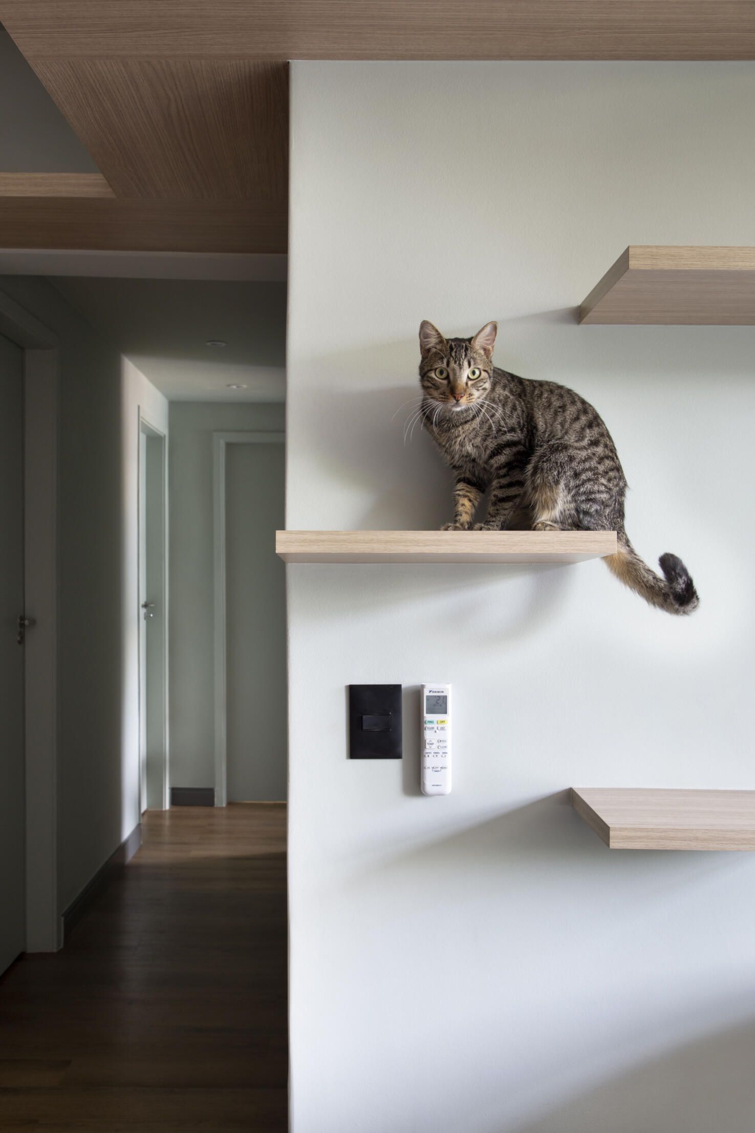 Na sala de jantar também há plataformas, só que mais próximas do teto!