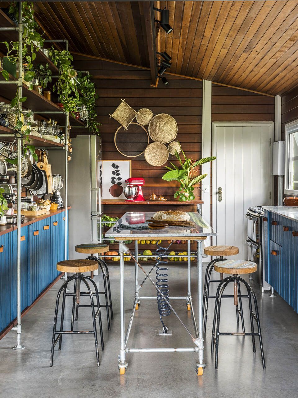 Com uma cozinha azul charmosa, um quarto todo branco e espaço para as inúmeras plantas dos moradores