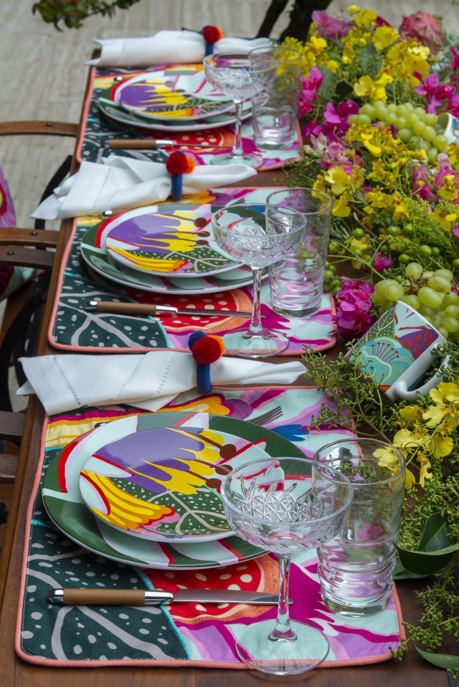 Louças e jogos americanos coloridos sempre dão um toque divertido.